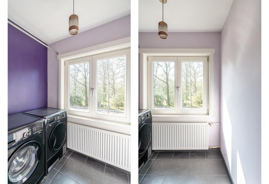 De vaste trap in de hal brengt je naar de eerste verdieping met ruimte overloop, twee grote slaapkamers, wasruimte en ruime badkamer. Op de vloer ligt een fraaie doorgelegde laminaat. De grote slaapkamer aan de achterzijde heeft ramen over de gehele breedte en beschikt over een dubbele wastafel. De slaapkamer aan de voorzijde heeft weer de charmante erker die meteen veel sfeer geeft. Ideaal is de handige aparte wasruimte met plek voor zowel wasmachine als droger en ruimte om je was op te hangen; fijn uit het zicht. De badkamer is van plezierig formaat, heeft veel daglicht en beschikt over een ruim bad met douche, toilet en wastafelmeubel.