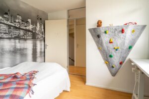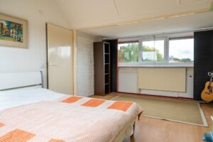 Op de zolder is een grote slaapkamer gemaakt van 17m2 met een dakkapel over de volle breedte van de kamer. Aan de andere kant van de kamer zijn twee grote Velux dakramen geplaatst die veel licht toelaten.