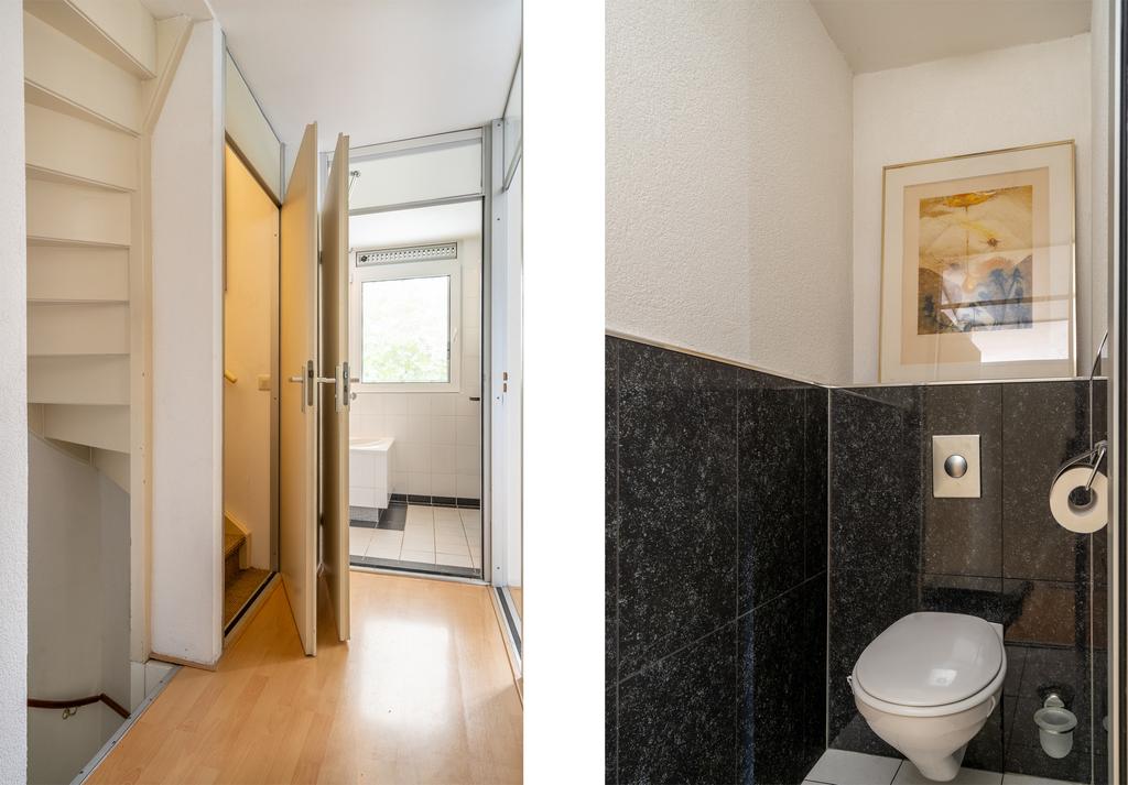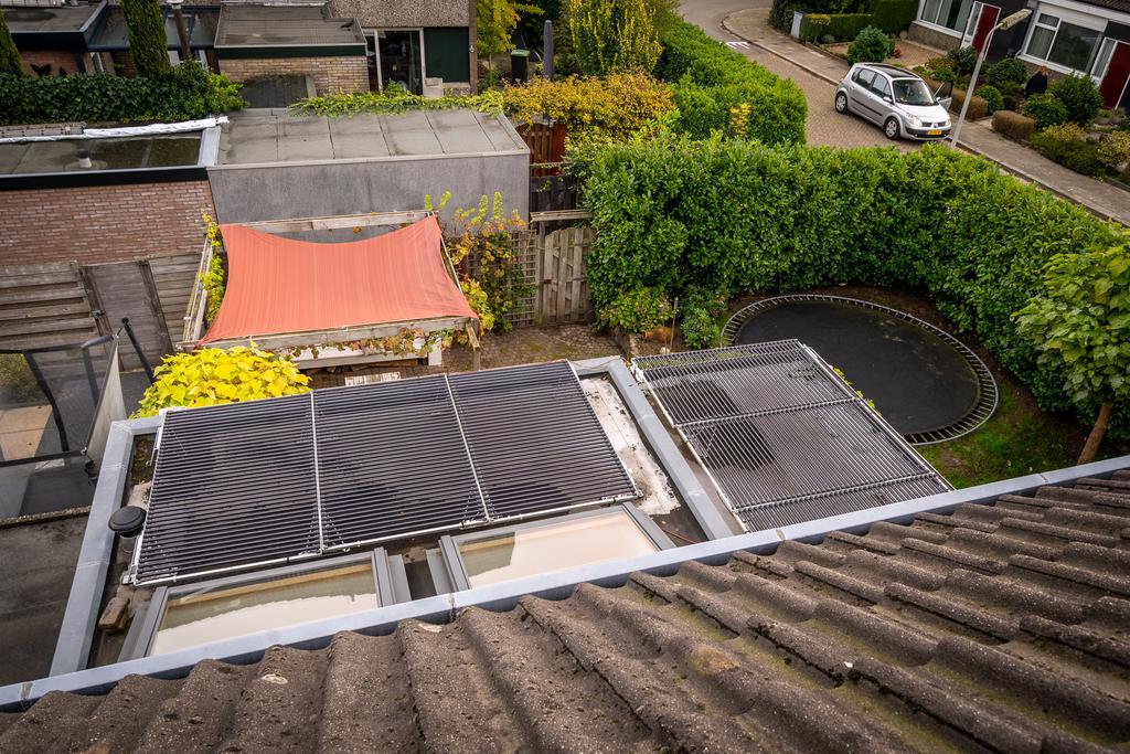 Daarnaast is een technische ruimte gecreëerd op zolder. Hier vind je de warmtepomp- en boiler, de CV-installatie, de omvormers van de zonnepanelen en de mechanische ventilatie.