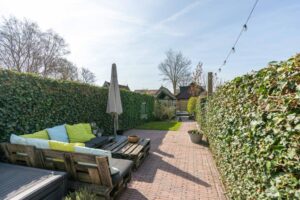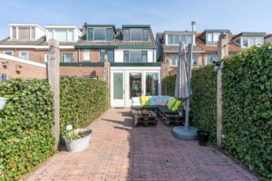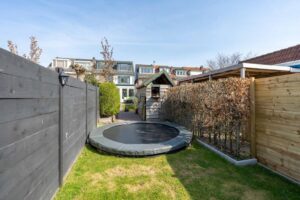 De woningen aan de Van Bemmelstraat staat bekend om hun diepe tuinen en dat geldt ook voor dit heerlijke huis. De tuin is 40 meter diep en ligt op het zuiden. Het recht van overpad ligt achterop het perceel dus je hebt veel en optimaal gebruik van de tuin. De tuin kent dan ook verschillende terrassen, een speelhuisje, grote trampoline en een fietsenoverkapping.
