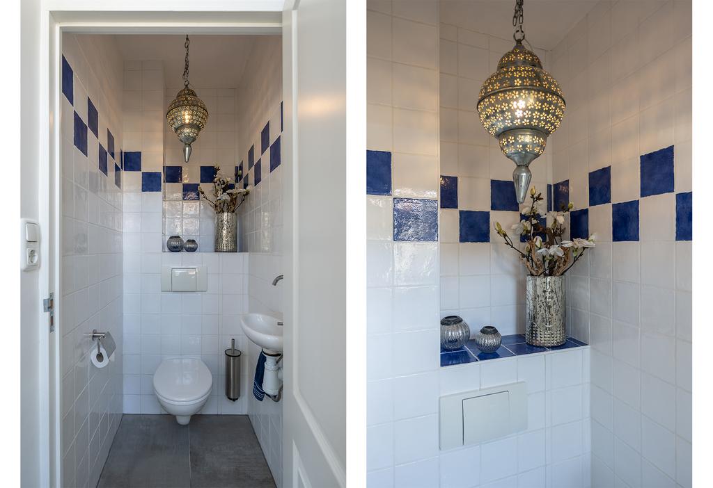 Via de entree kom je in de hal met meterkast, toilet en toegang tot de grote leefruimte beneden. Over de gehele begane grond ligt een nette lichte laminaatvloer en muren en plafonds zijn strak gestukt. Het toilet is ruim, kent een moderne afwerking en beschikt over een fonteintje.