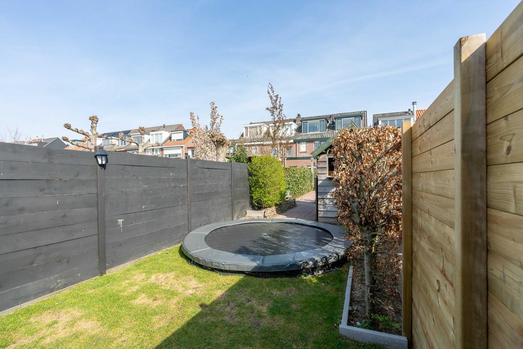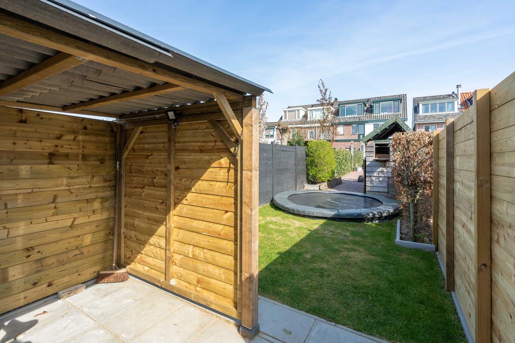 De woningen aan de Van Bemmelstraat staat bekend om hun diepe tuinen en dat geldt ook voor dit heerlijke huis. De tuin is 40 meter diep en ligt op het zuiden. Het recht van overpad ligt achterop het perceel dus je hebt veel en optimaal gebruik van de tuin. De tuin kent dan ook verschillende terrassen, een speelhuisje, grote trampoline en een fietsenoverkapping.