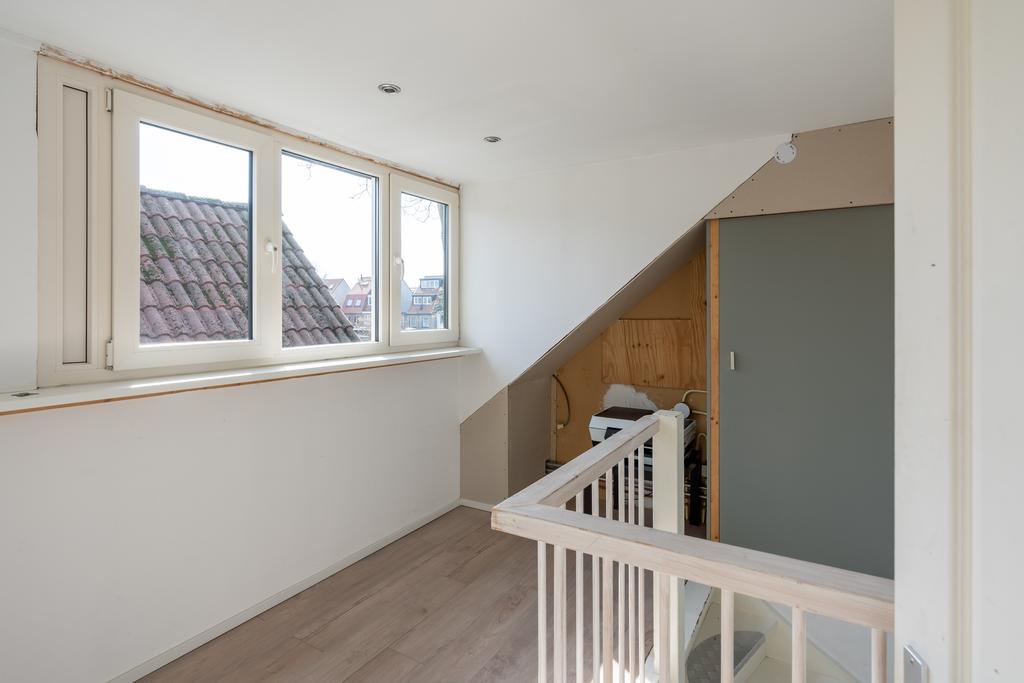 Een vaste trap brengt je naar de tweede verdieping. Ook op deze verdieping vind je door de twee grote dakkapellen aan weerszijden weer twee volwaardige kamers. Op dit moment zijn de kamers met elkaar verbonden maar door het plaatsen van een (schuif)deur zijn deze goed te scheiden en creëer je twee aparte kamers.