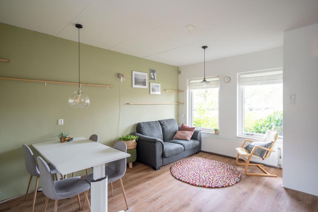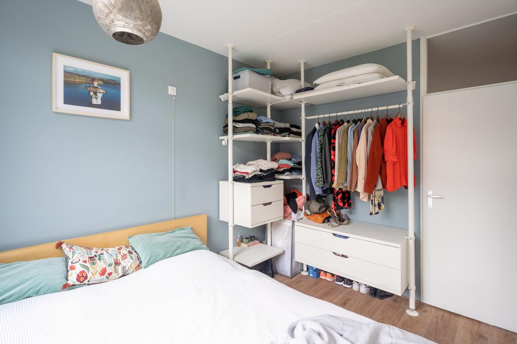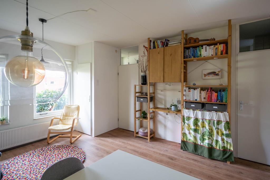 De woonkamer ligt aan de voorzijde, is ruim en fijn licht door de grote raampartij. In 2016 zijn HR++ ramen geplaatst wat heerlijk comfortabel wonen is. Je kijkt uit op een parkachtige omgeving. Aan de achterzijde van het appartement ligt de keuken en de slaapkamer. De slaapkamer is ruim (10m2) en heeft voldoende plaats voor een goede kast. De grote raam geef veel licht en een plezierig uitzicht over uitzicht over de tuin.
