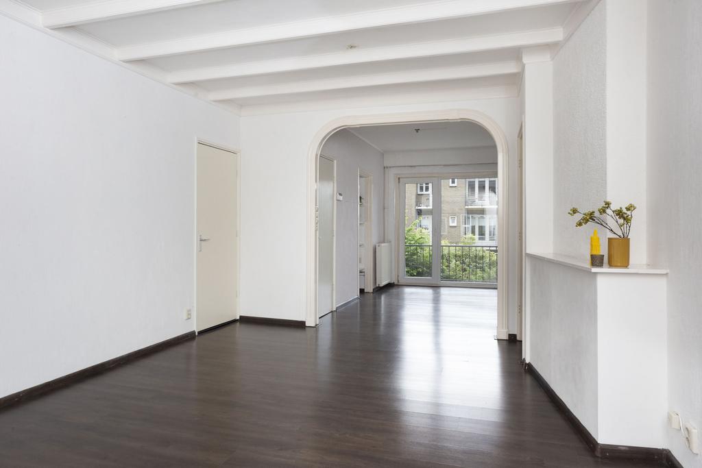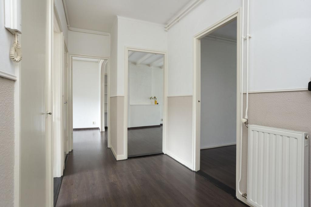 Via het bellentableau en fraaie opgang, zo passend bij het bouwjaar, kom je bij de voordeur van het appartement. De centrale hal geeft toegang tot de twee slaapkamers, de woonkamer, de eetkamer, toilet, meterkast en keuken. Het appartement is netjes onderhouden en in het gehele appartement ligt een donkere laminaat vloer.