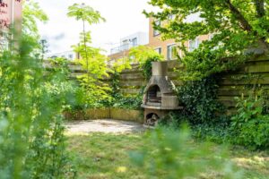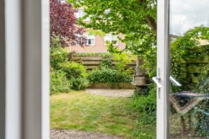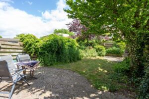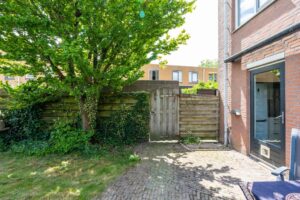 De buitendeur in de keuken brengt je naar de achtertuin gelegen op het oosten. De tuin is van fijn formaat waardoor er genoeg ruimte is voor een terras en bijvoorbeeld een lounge set. De hoekligging zorgt tenslotte voor veel privacy.