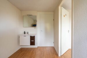 Een vaste trap brengt je naar de tweede verdieping. Deze opbouw voorziet in een volwaardige woonlaag met wederom 3 slaapkamers. Ook deze kamers zijn ruim met respectievelijk 17, 10 en 7m2. De kleinste slaapkamer is voorzien van een wastafel en kan eenvoudig bij de andere kamer aan de achterzijde worden getrokken waardoor je een riante slaapkamer creëert. Verder vind je op de overloop nog een handige aparte ruimte voor de wasmachine/drogeropstelling.