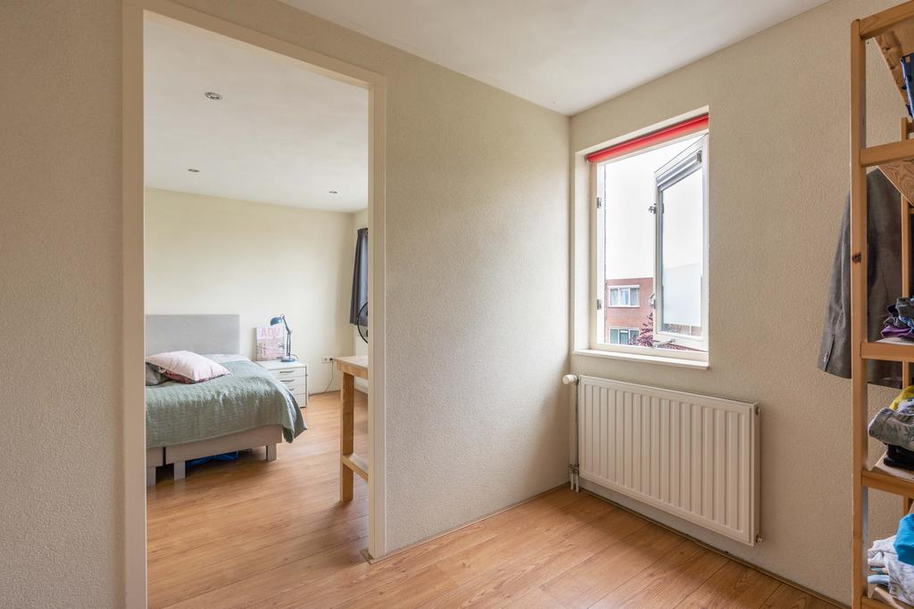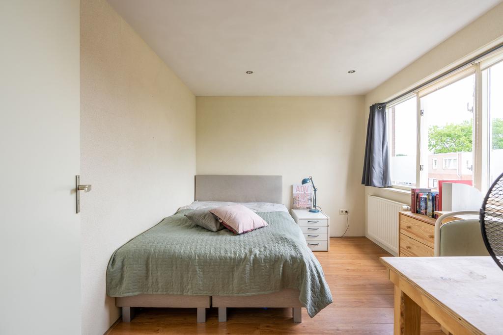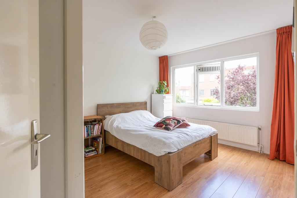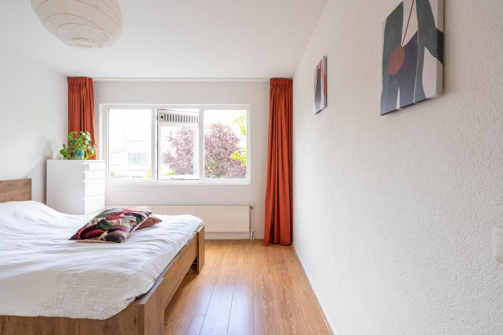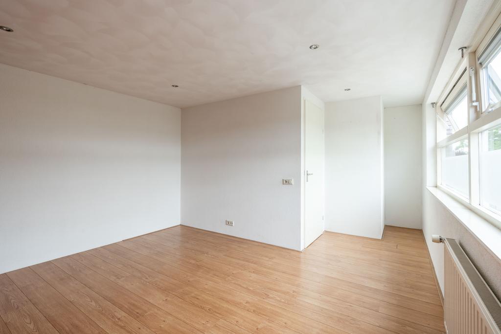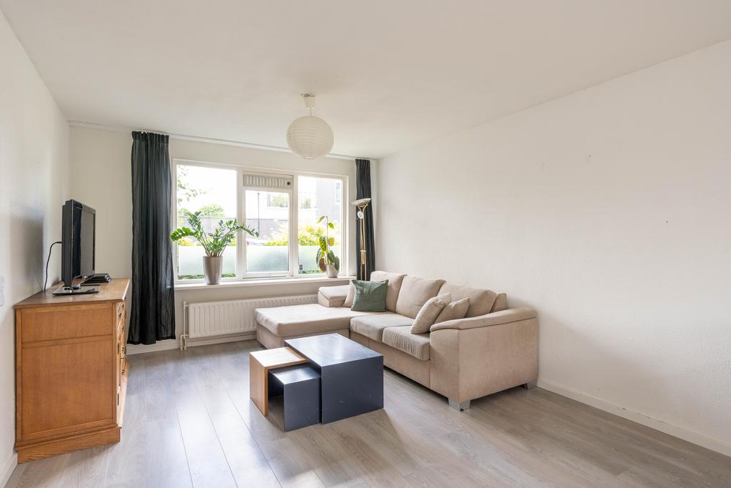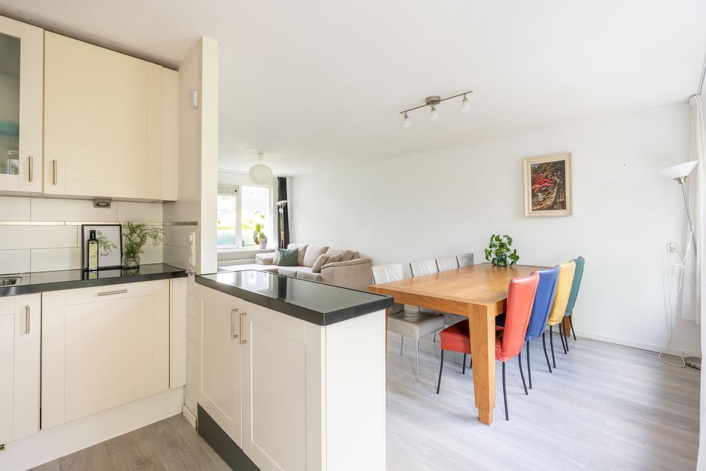 De woonkamer bevindt zich aan de voorzijde en is plezierig licht door de grote raampartij; een fijne plek om thuis te komen. Er is genoeg ruimte voor een grote zithoek en eettafel.