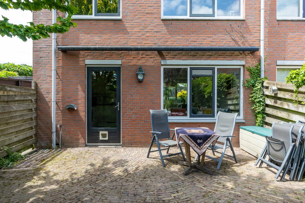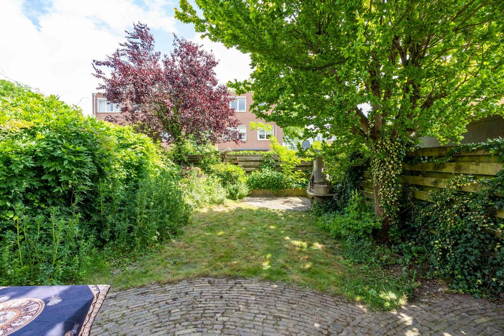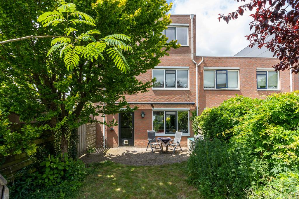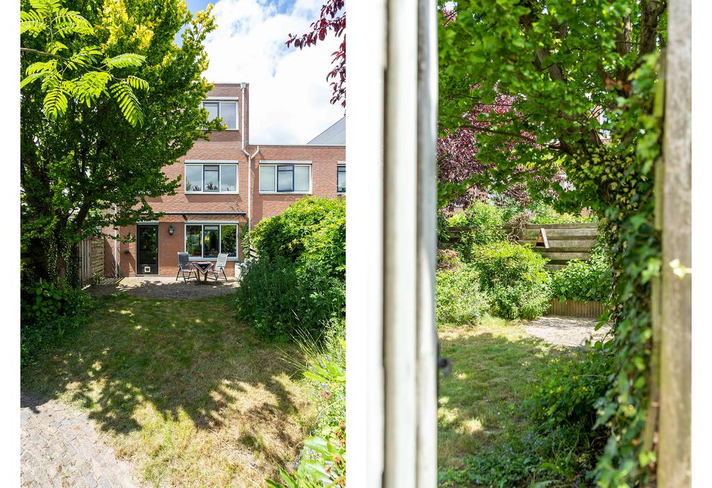 De buitendeur in de keuken brengt je naar de achtertuin gelegen op het oosten. De tuin is van fijn formaat waardoor er genoeg ruimte is voor een terras en bijvoorbeeld een lounge set. De hoekligging zorgt tenslotte voor veel privacy.