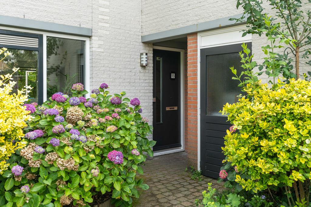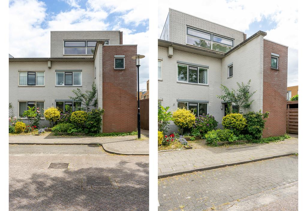 De woning heeft een ruime voortuin met genoeg plek voor een bankje. Aan de voorzijde van het huis bevindt zich een grote berging. Via de overdekte entree kom je bij de voordeur.