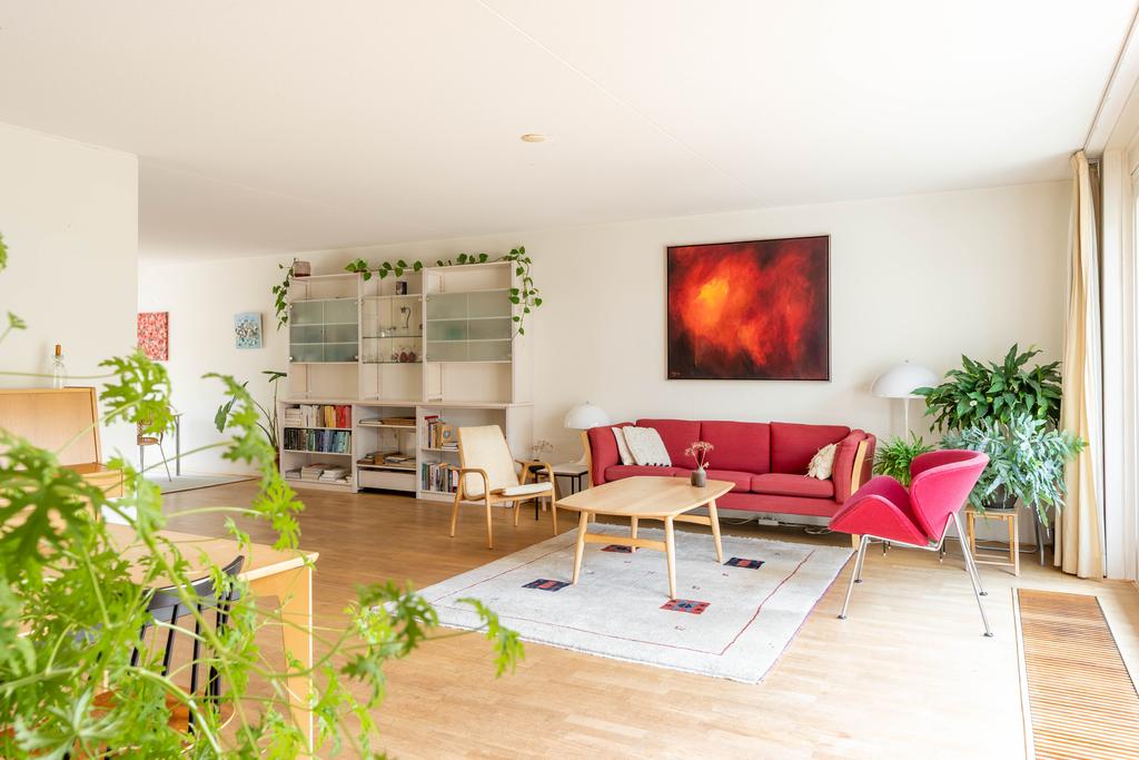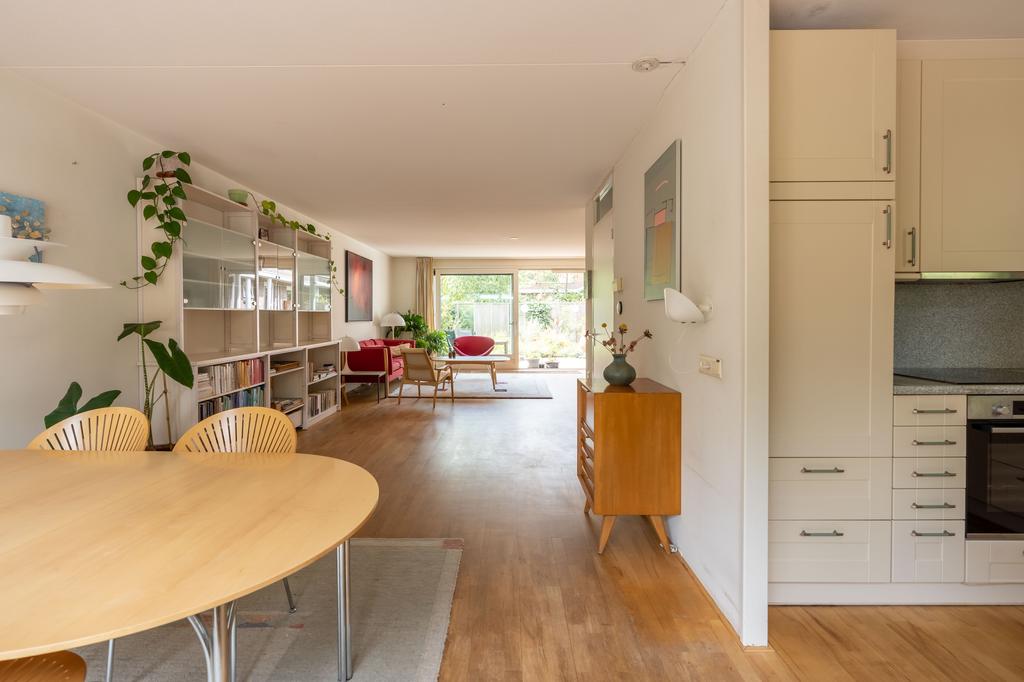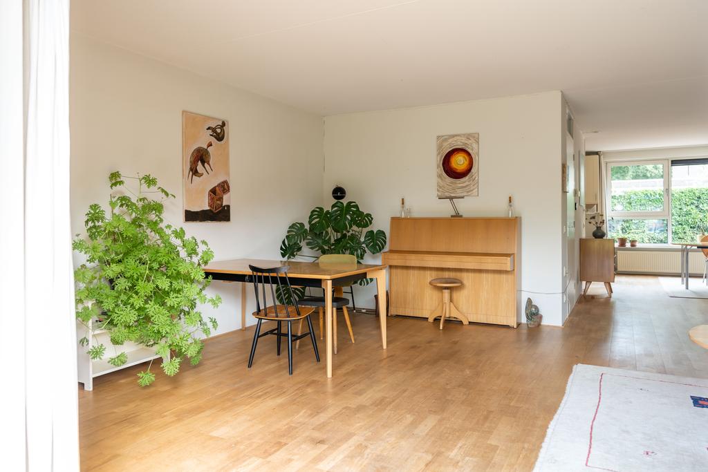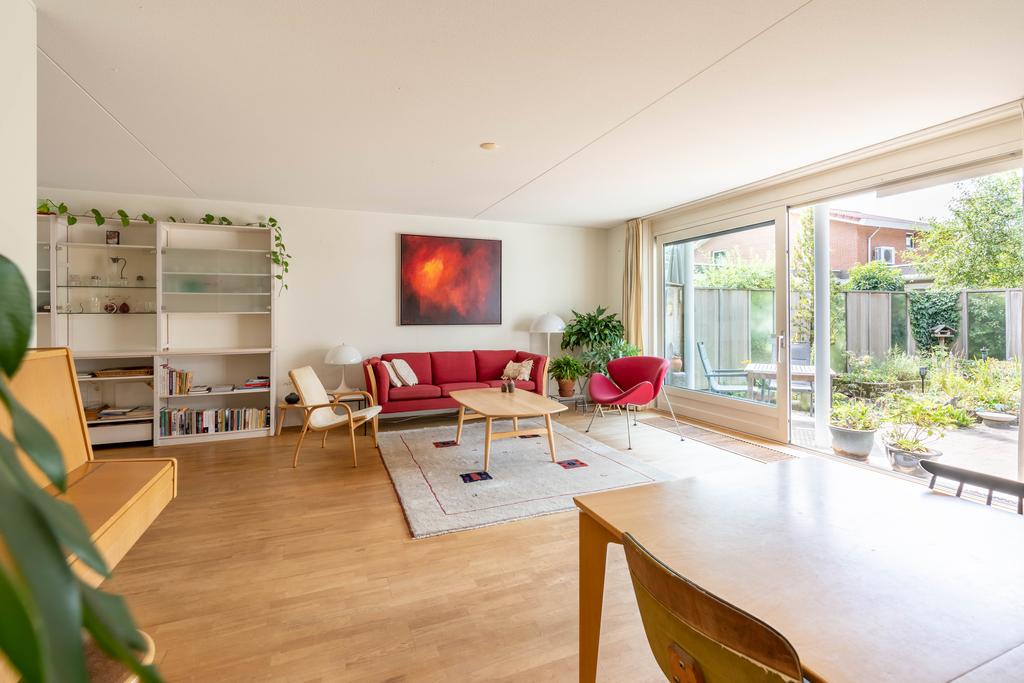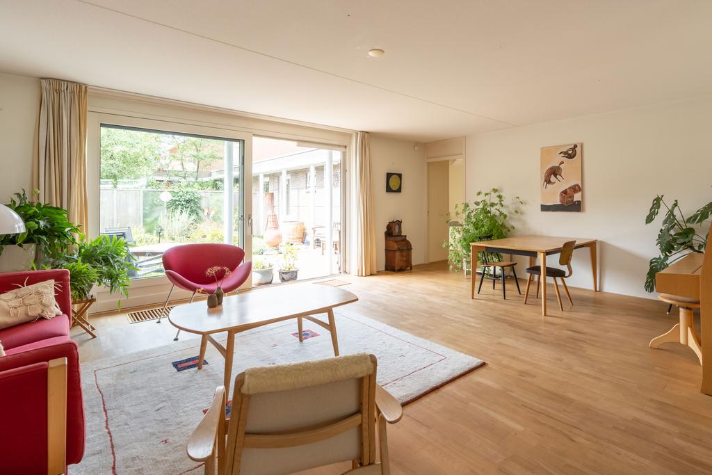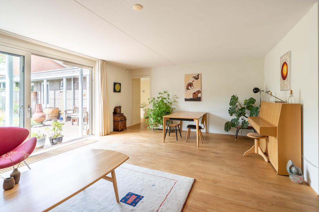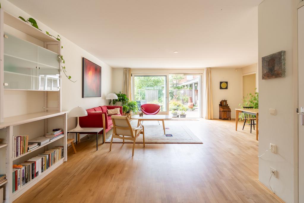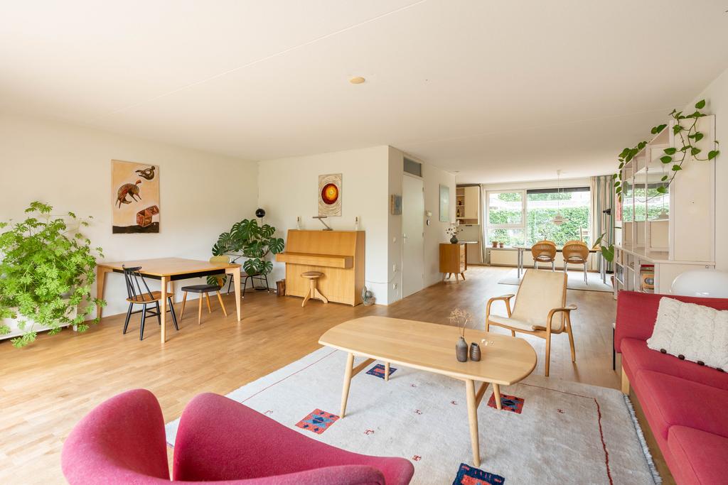 Doordat de woonkamer aan de achterzijde maar liefst 6,4 meter breed is, biedt dit ruimte voor 2 aparte zithoeken, een extra eettafel, leeshoek of bijvoorbeeld een muziekhoek met piano. De grote schuifpui naar de tuin maakt het geheel af.
