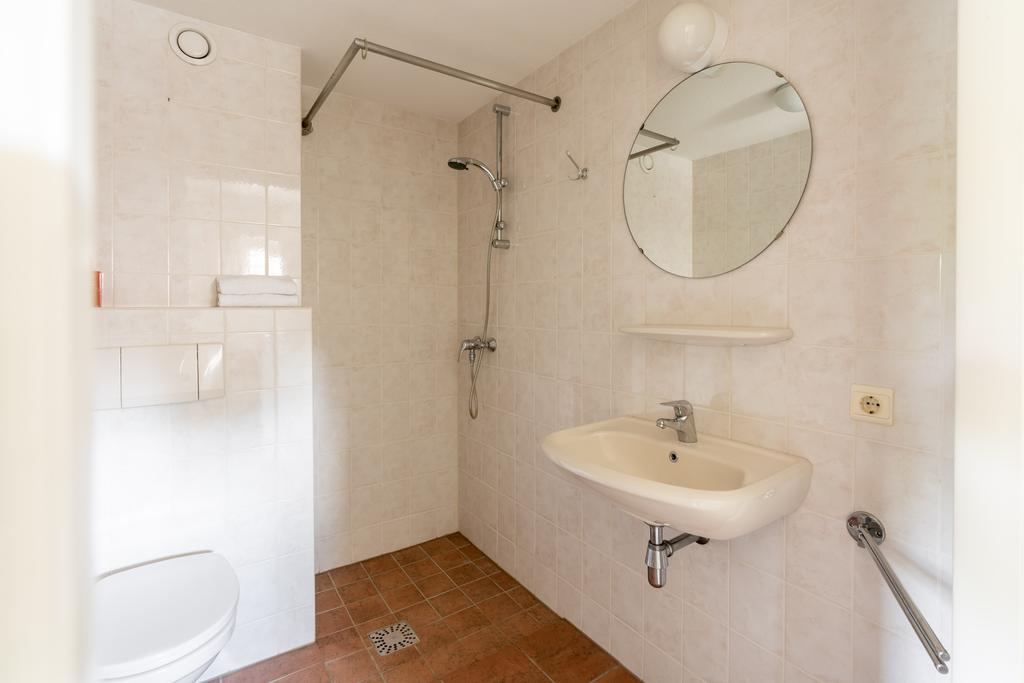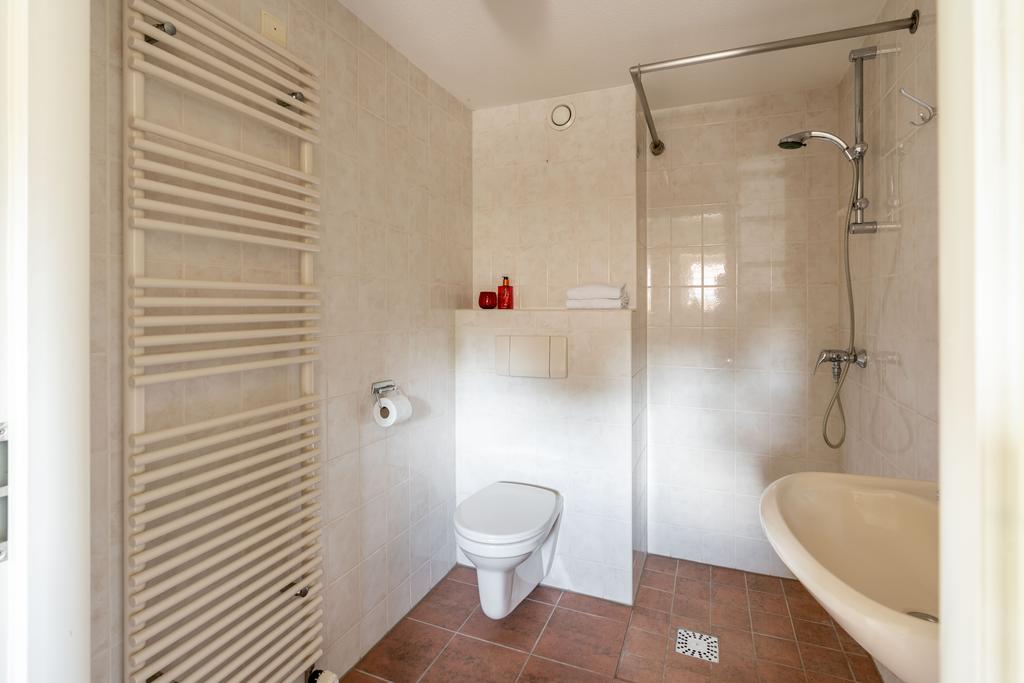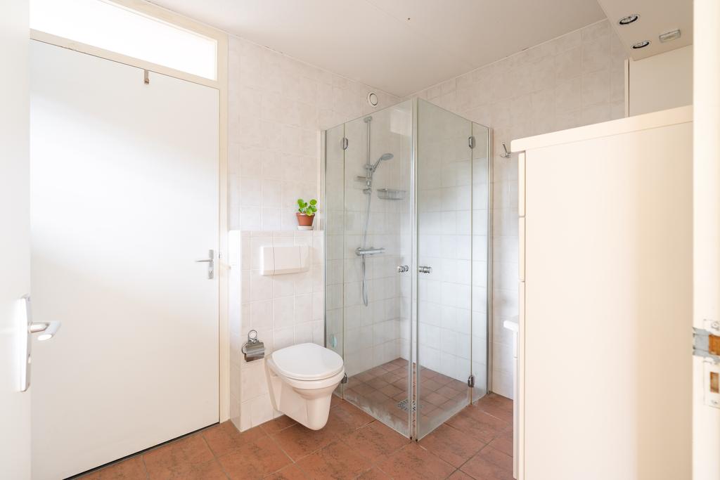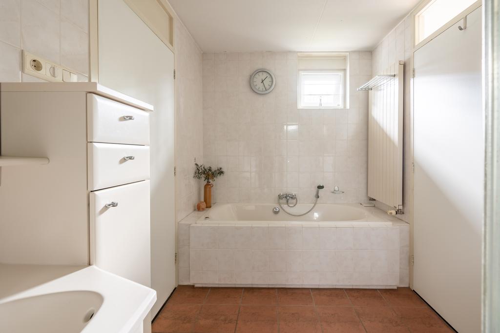 Achter de slaapkamer bevindt zich een nette en goed onderhouden badkamer met douche, whirlpool-bad, 2e toilet en wastafel met meubel.