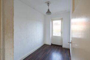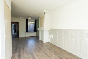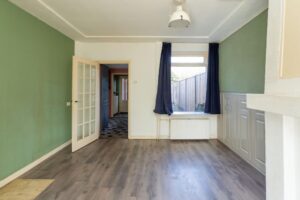 Een gezellige schouw in het midden van de kamer verdeelt de woonkamer en hier kun je een fijne zithoek maken. De woning is aan de achterzijde eenvoudig te vergroten door een uitbouw naar achteren waardoor je een heerlijk woonoppervlak kunt creëren. Betrek je daar dan ook nog de ruimte van keuken bij, dan heb je wellicht de gedroomde woonkeuken.