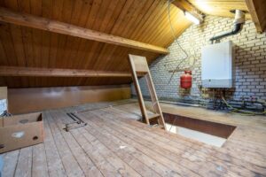 Met de vlizotrap kom je op de bergzolder. Hier vind je ook de CV-opstelling.