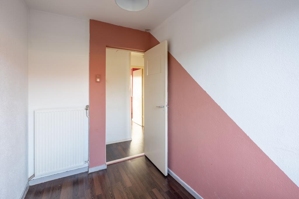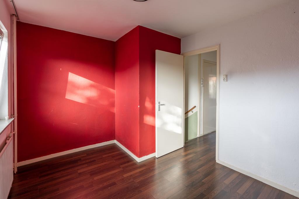De trap in de hal brengt je naar de tweede woonlaag. Hier vind je aan de voorzijde een ruime slaapkamer. Aan de achterzijde zijn twee slaapkamers waarvan één met toegang tot het dakterras op de uitbouw. Op de overloop zijn twee bergkasten; één is de ideale plek voor wasmachine en drogeropstelling. De andere bergkast is bij de douche te trekken tot een volwaardige badkamer.