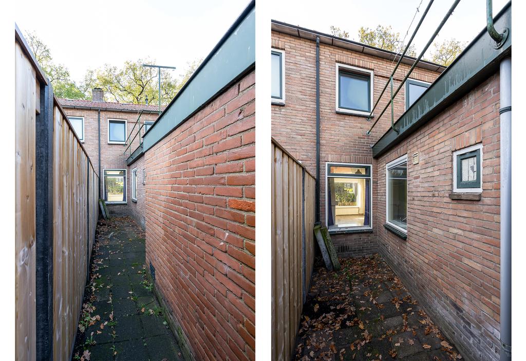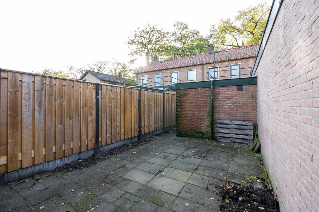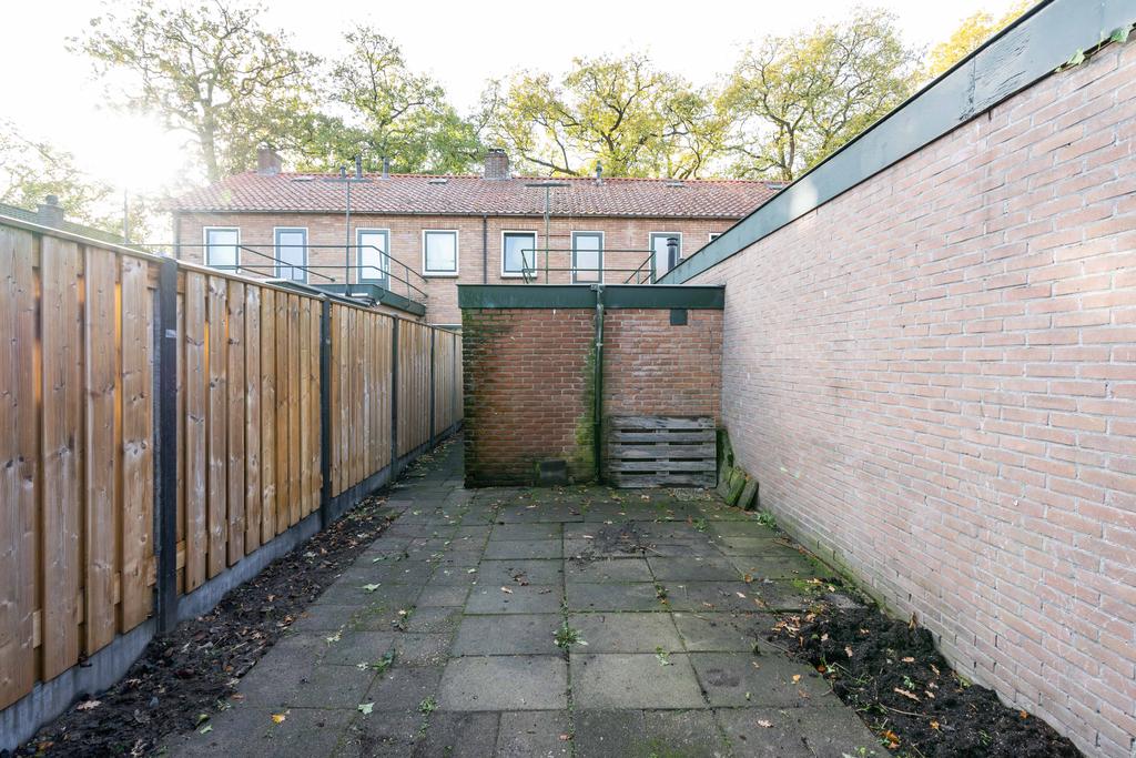 Met behulp van een overkapping kun je droog oversteken naar de schuur. Ook kun je zo de tuin betreden. De tuin is ruim genoeg om een gezellig terras te maken om te genieten van de zonuurtjes.