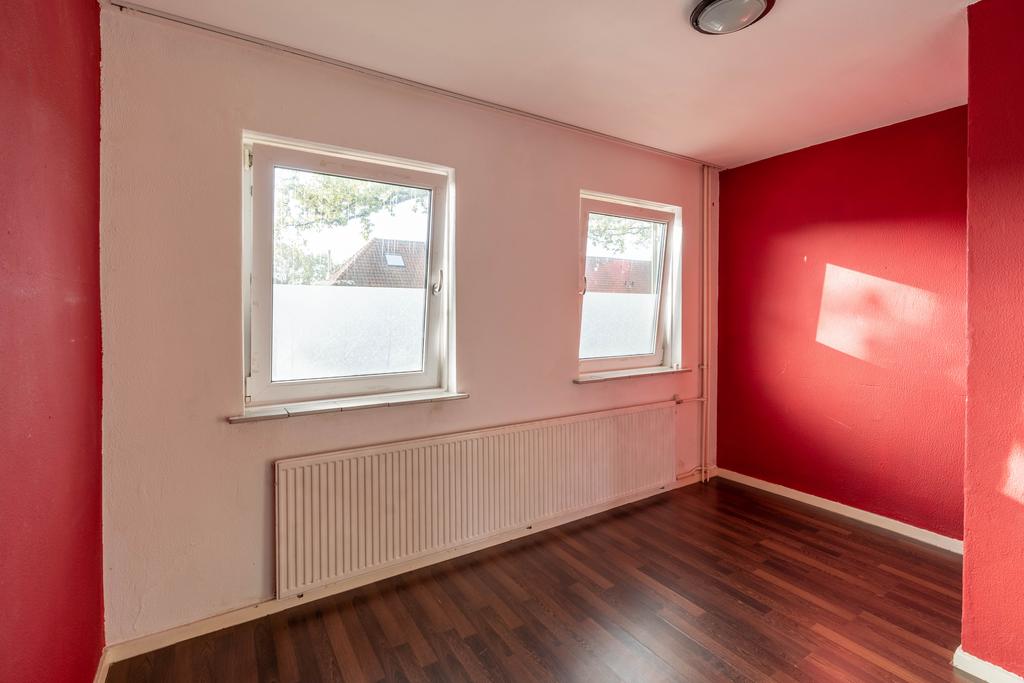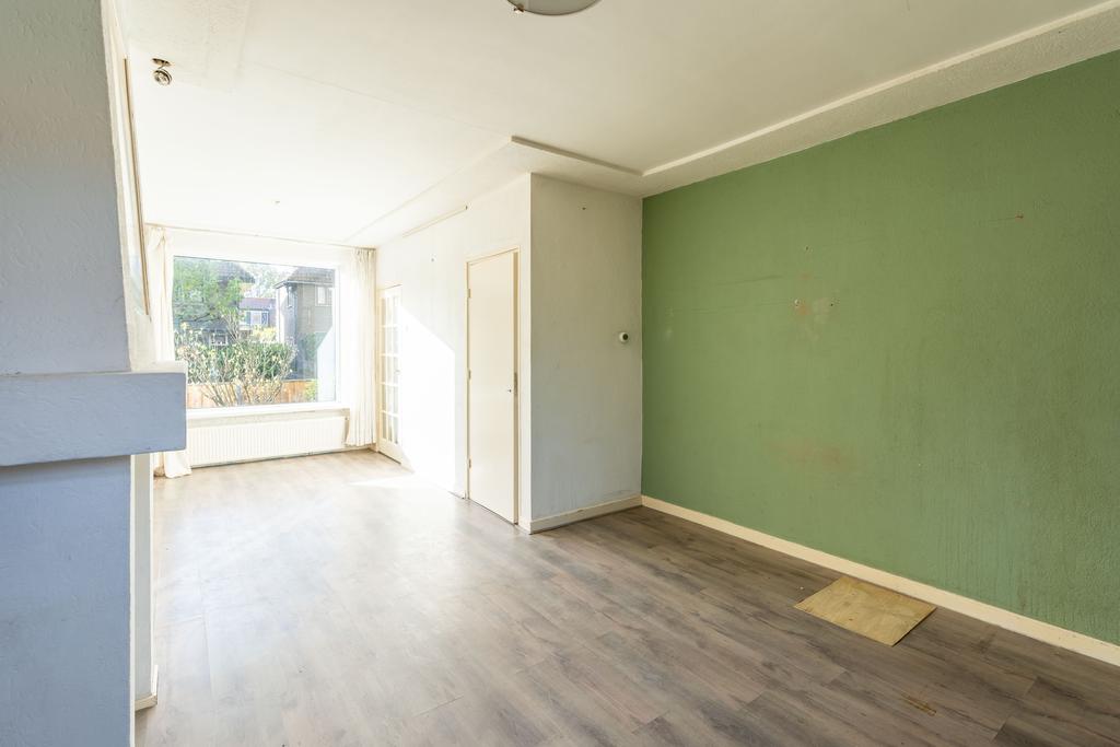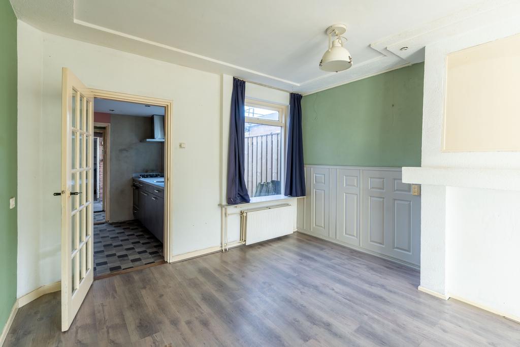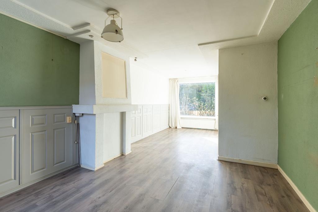 Een gezellige schouw in het midden van de kamer verdeelt de woonkamer en hier kun je een fijne zithoek maken. De woning is aan de achterzijde eenvoudig te vergroten door een uitbouw naar achteren waardoor je een heerlijk woonoppervlak kunt creëren. Betrek je daar dan ook nog de ruimte van keuken bij, dan heb je wellicht de gedroomde woonkeuken.