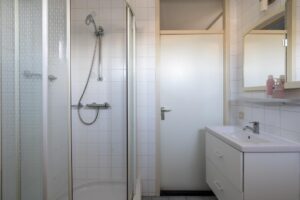 Via de vaste trap in de hal kom je op de eerste verdieping met overloop. Vanuit de overloop heb je toegang tot de ruime badkamer en die slaapkamers van respectievelijk ca. 14, 10 en 7 m2. De badkamer met heerlijk daglicht door de twee ramen, is in neutrale kleurstelling en is voorzien van douche, wastafelmeubel, en toilet. Hier vind je ook de wasmachine aansluiting die ook boven kan worden geplaatst zodat nog meer ruimte ontstaat.