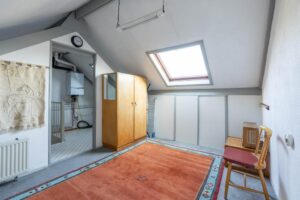 Deze verdieping is een volwaardige woonlaag. Op de voorzolder bevindt zich de CV-opstelling. Verder bevindt zich hier een vierde grote slaapkamer van ca. 13 m2 met aan weerszijden knieschotten voor voldoende bergruimte. Deze kamer kun je vergroten door dakkapellen te plaatsen waardoor je zelfs twee slaapkamers kunt maken.