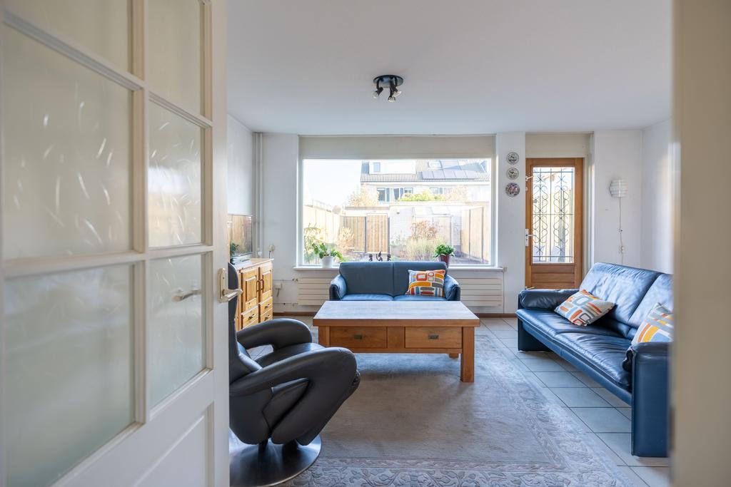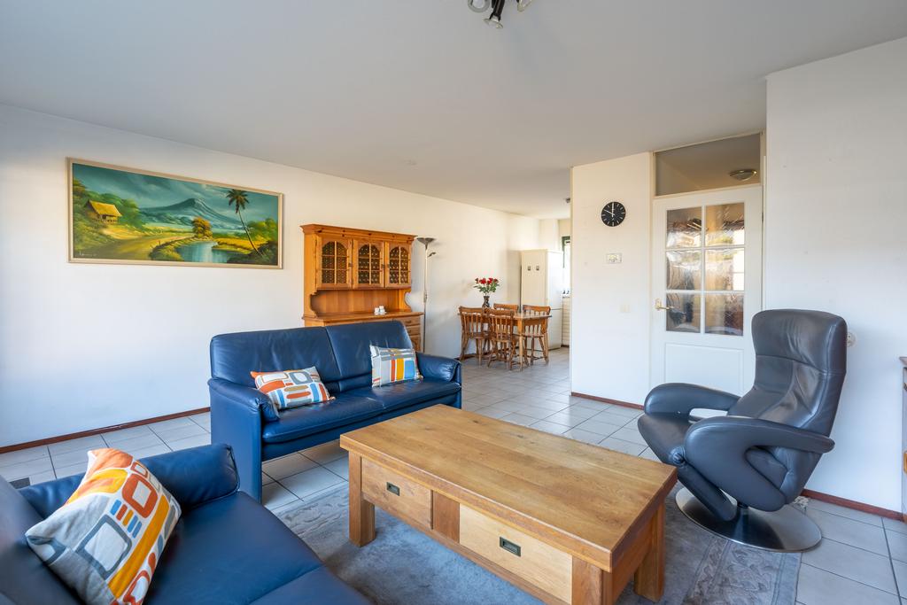De woonkamer is voorzien van een plavuizen vloer. De woonkamer is tuingericht en heeft een deur naar de diepe achtertuin. In de woonkamer is voldoende plaats voor een ruime zithoek en een eetgedeelte.