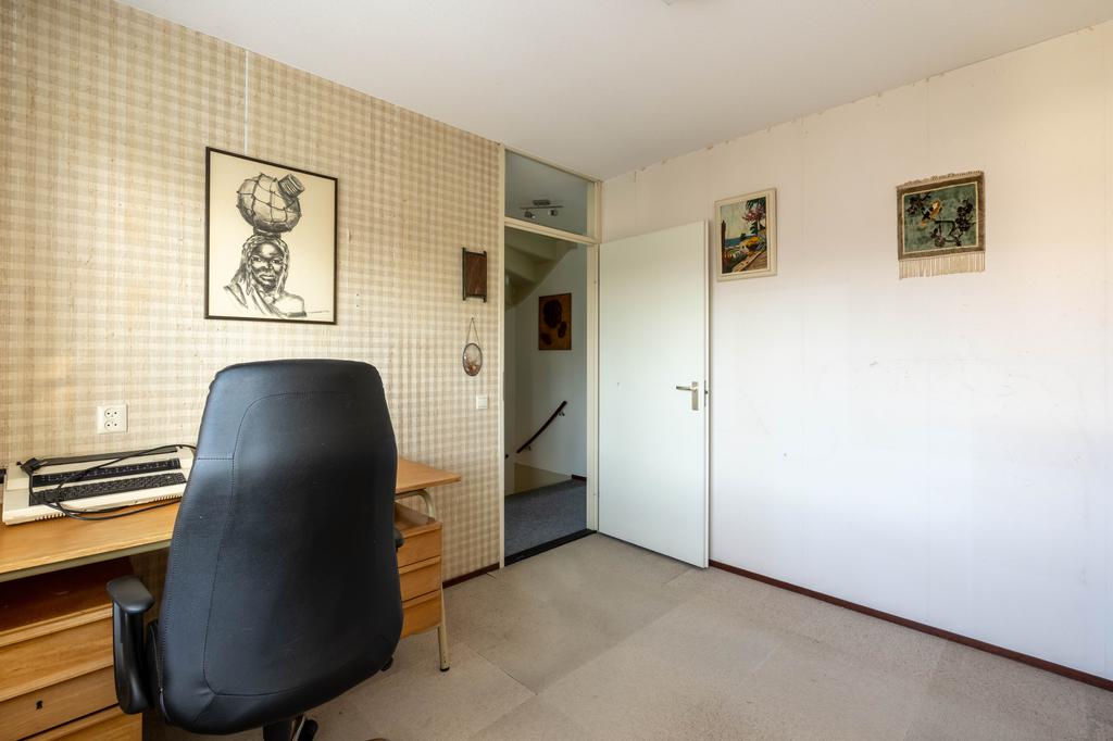 Via de vaste trap in de hal kom je op de eerste verdieping met overloop. Vanuit de overloop heb je toegang tot de ruime badkamer en die slaapkamers van respectievelijk ca. 14, 10 en 7 m2. De badkamer met heerlijk daglicht door de twee ramen, is in neutrale kleurstelling en is voorzien van douche, wastafelmeubel, en toilet. Hier vind je ook de wasmachine aansluiting die ook boven kan worden geplaatst zodat nog meer ruimte ontstaat.