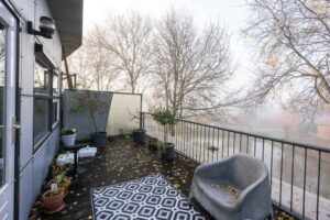 De tweede verdieping biedt tenslotte ruimte aan een tweede badkamer, een bergkast met cv-opstelling (cv uit 2022 en mechanische ventilatie uit 2021), twee goede slaapkamers en een groot dakterras.