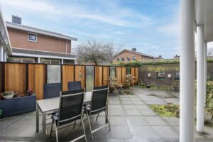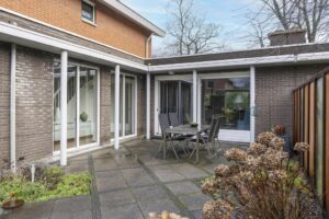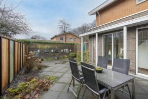 De besloten patiotuin heeft een gunstige ligging op het zuiden en zorgt daarmee voor veel licht in zowel de tuin als in het huis. De tuin heeft een fijn terras en een paar groenborders. Een tuin die eenvoudig te onderhouden is en tegelijkertijd een fijne plek is om te vertoeven. De tuin is toegankelijk via de schuifpui maar ook via de poort vanaf de oprit.