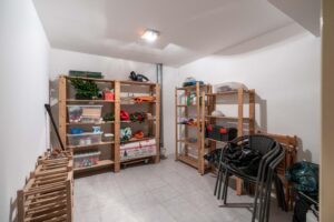 Via de garage is via een vaste trap tenslotte nog de ruime kelder te bereiken. Ook deze is netjes afgewerkt met een goede tegelvloer. Hier kunt u nog veel spullen kwijt.