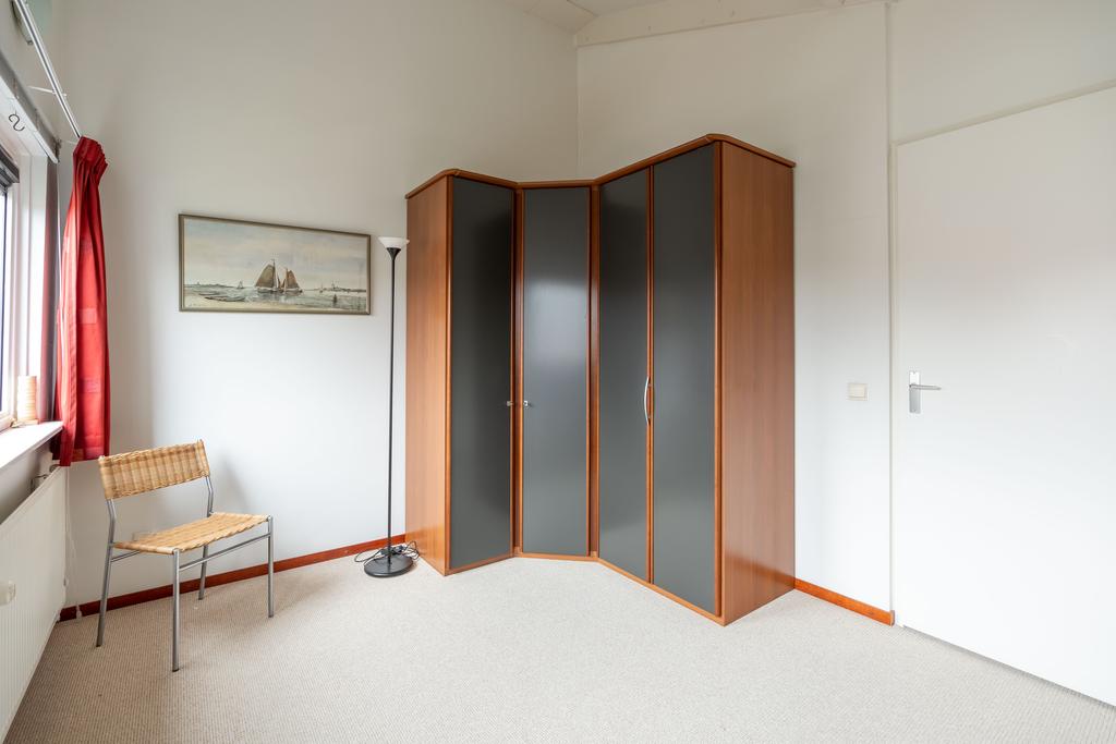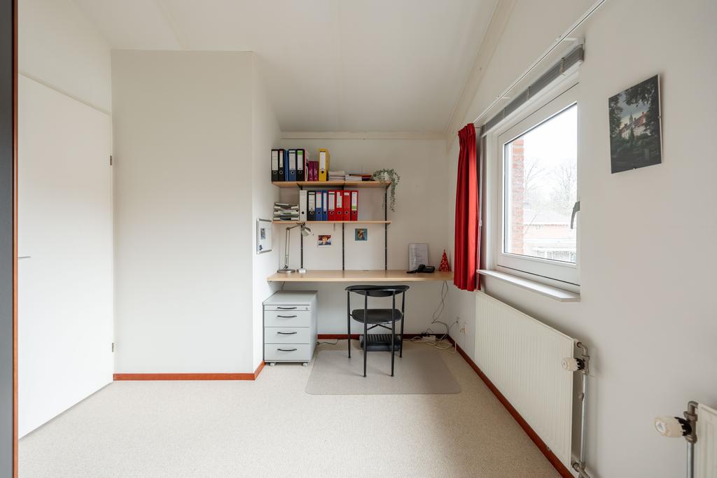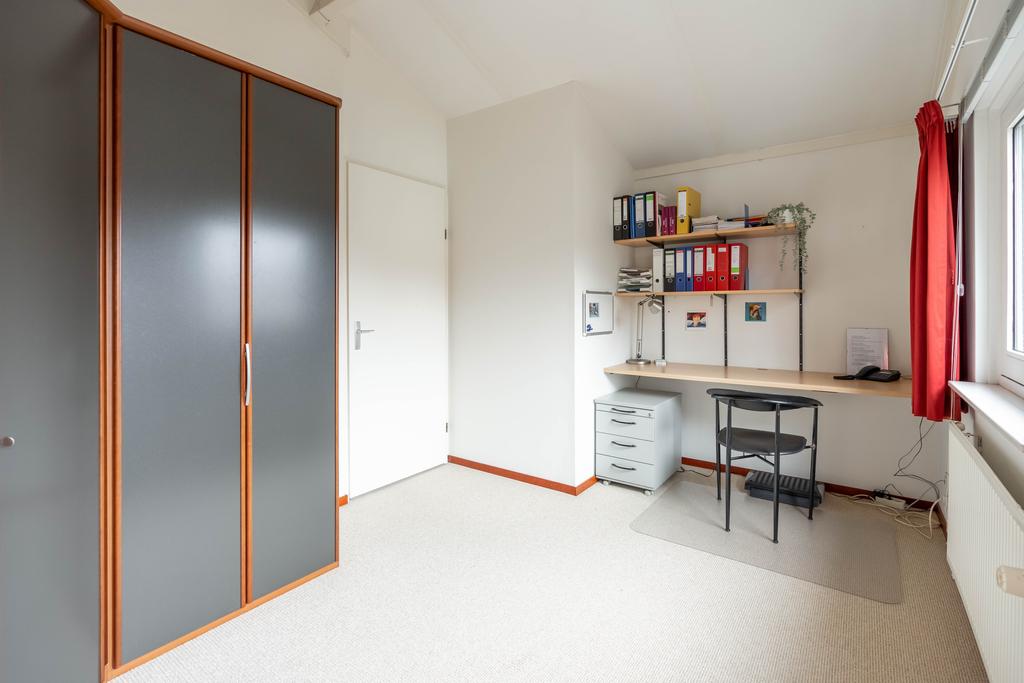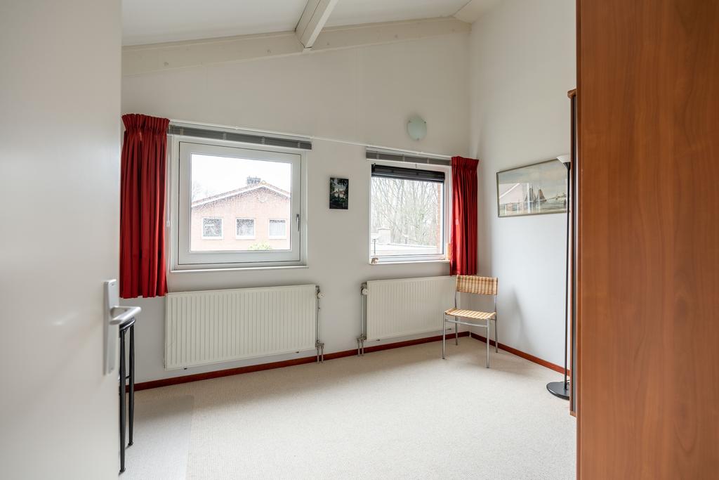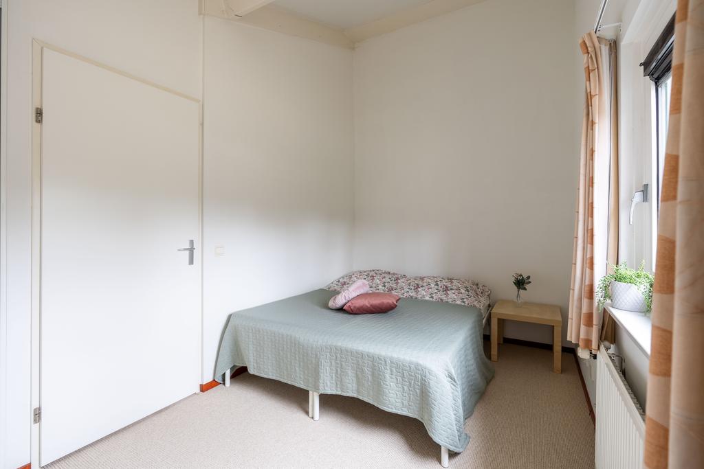 De trap in de hal brengt u naar de eerste verdieping. De overloop is plezierig licht door het raam in de zijgevel en geeft toegang tot twee slaapkamers en een tweede badkamer. De badkamer is in lichte kleurstelling en voorzien van douche, vaste wastafel en toilet. In beide slaapkamers ligt een keurige lichte vloerbedekking en de wanden zijn netjes afgewerkt. Doordat de nok open is gehouden, voelen de slaapkamers extra ruim aan en is er plek voor bijvoorbeeld een hoogslaper waardoor kamers een dubbele functie kunnen hebben.