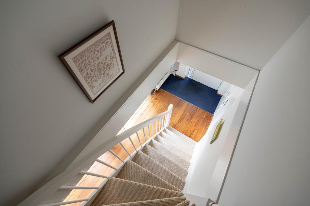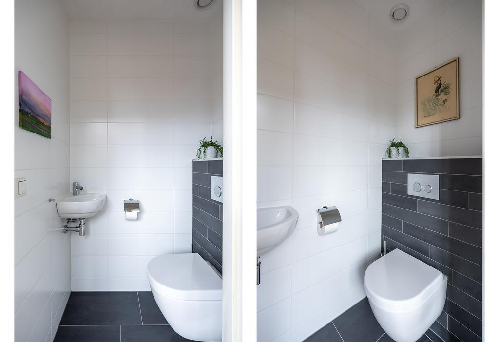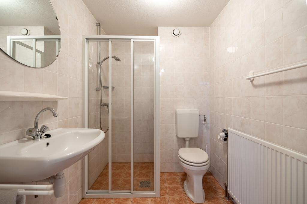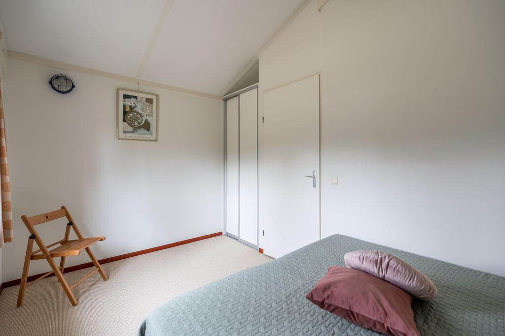 De trap in de hal brengt u naar de eerste verdieping. De overloop is plezierig licht door het raam in de zijgevel en geeft toegang tot twee slaapkamers en een tweede badkamer. De badkamer is in lichte kleurstelling en voorzien van douche, vaste wastafel en toilet. In beide slaapkamers ligt een keurige lichte vloerbedekking en de wanden zijn netjes afgewerkt. Doordat de nok open is gehouden, voelen de slaapkamers extra ruim aan en is er plek voor bijvoorbeeld een hoogslaper waardoor kamers een dubbele functie kunnen hebben.