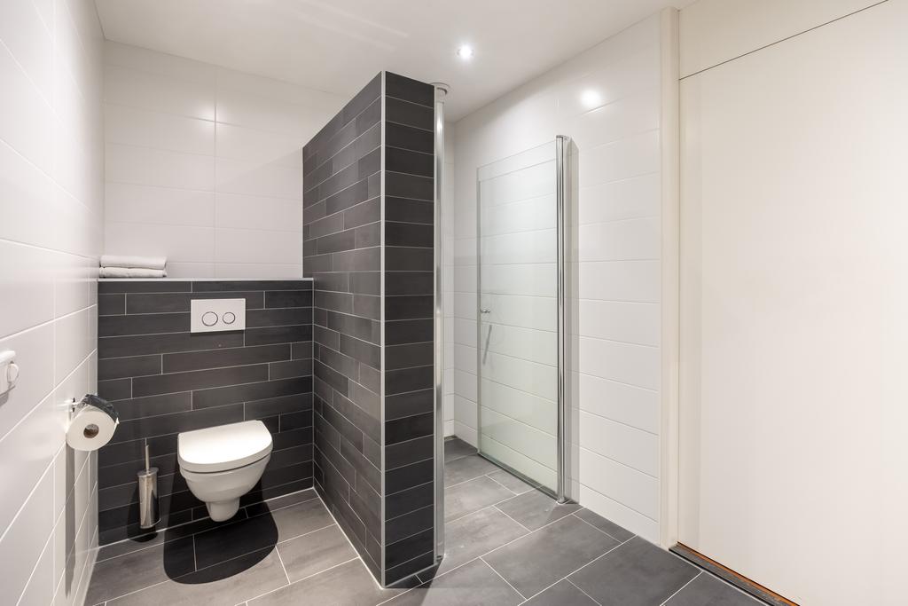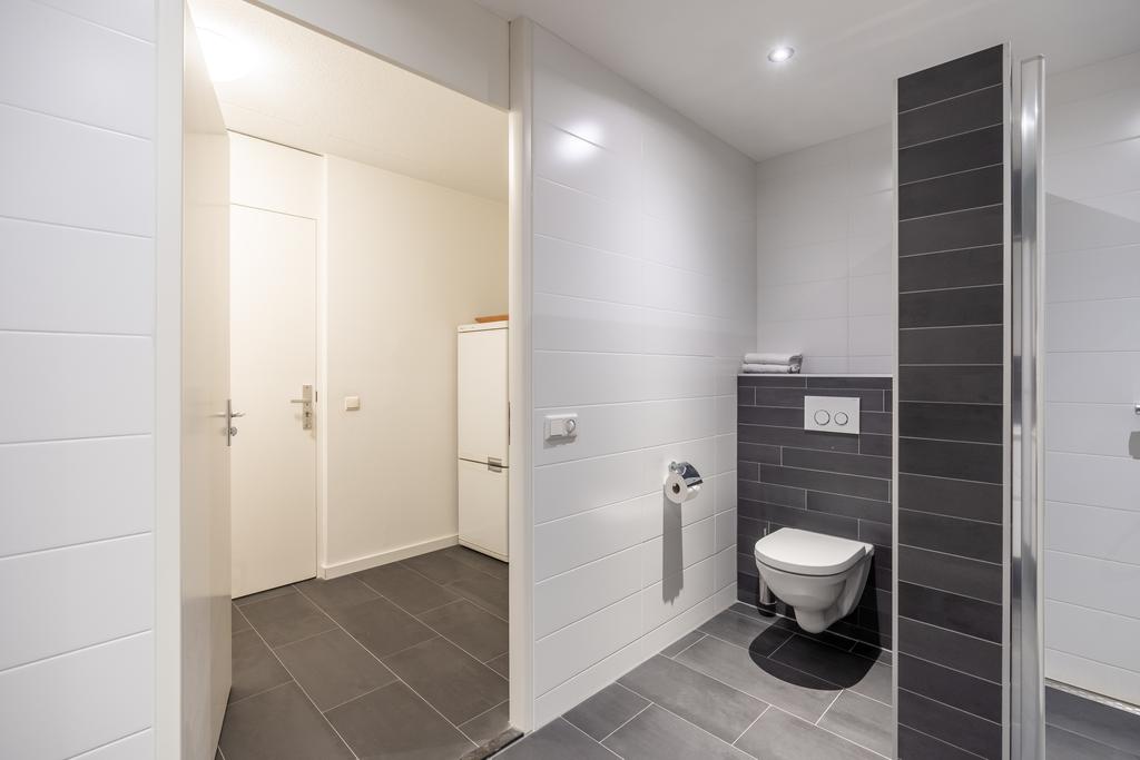 De slaapkamer is bereikbaar vanuit de woonkamer. Ook hier vindt u weer een gelijke nette vloer- en wandafwerking. De slaapkamer is ruim met 18 m2 en biedt dan ook volop ruimte voor een groot bed en veel kledingkasten. Naast de slaapkamer bevindt zich een mooie en keurig onderhouden badkamer. De badkamer is in neutrale zwart-wit kleurstelling en beschikt over een ruimte inloopdouche, 2e toilet en een dubbel wastafelmeubel met kast.