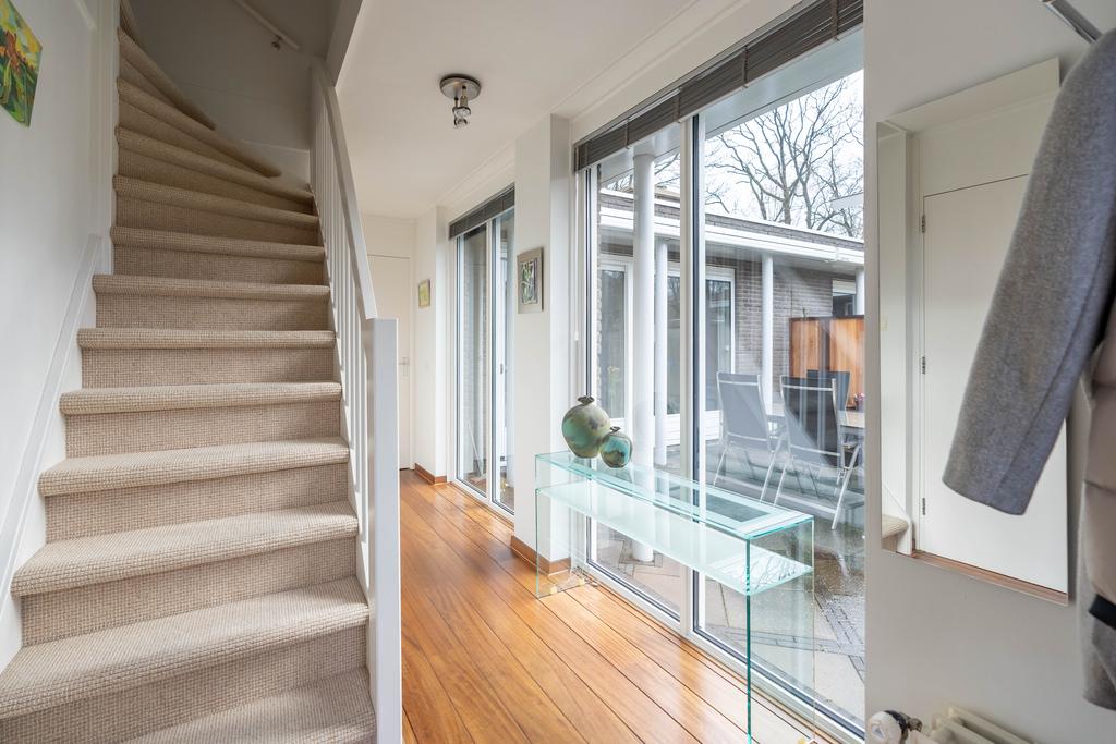 Via de entree komt u in de ruime en lichte hal met toilet met fonteintje, trapopgang, meterkast, garderobe en toegang tot zowel de garage als de woonkamer. De hal loopt langs de patiotuin met een prettige lichtinval.