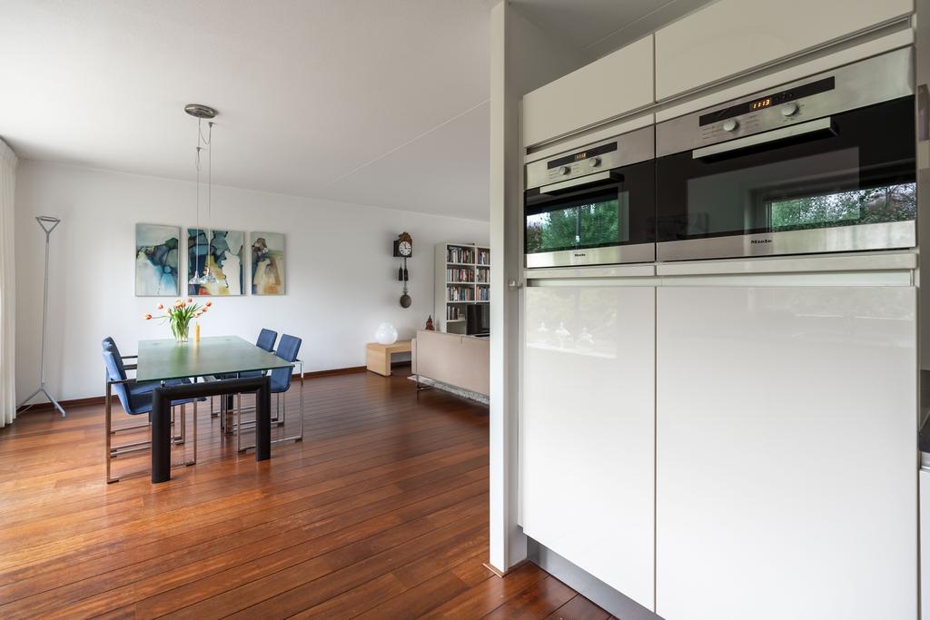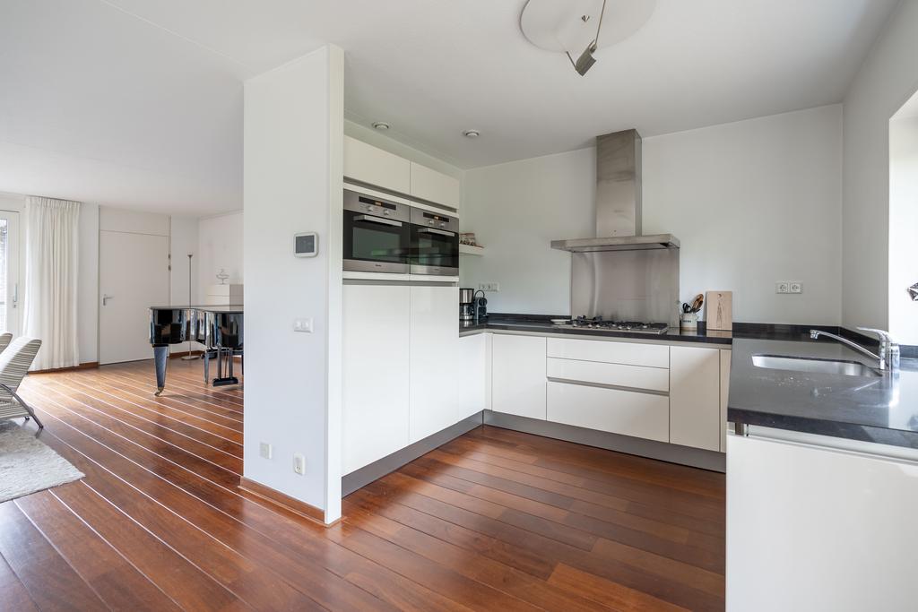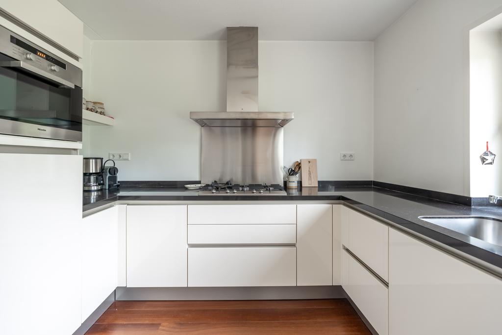 De keuken bevindt zich aan de achterzijde van de woning. De goed onderhouden Siematic keuken is in neutrale kleurstelling en voorzien van een stenen werkblad. De ruime keuken is in U- opstelling en voorzien van diverse inbouwapparatuur zoals een 5-pits gaskookplaat, Miele vaatwasser, twee combi-ovens (Miele) en koelkast. Een fijne plek met veel werkruimte om te koken en met zicht op het groen.