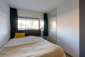 De slaapkamer meet 9 m2 en ligt aan de voorzijde. Hier is ook voldoende plek voor een grote kledingkast.