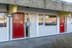 De voordeur op de begane grond biedt je toegang tot de hal van het appartement.