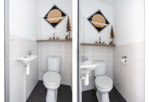 Het separaat toilet is via de hal toegankelijk. In de hal vind je ook een ruime kast.