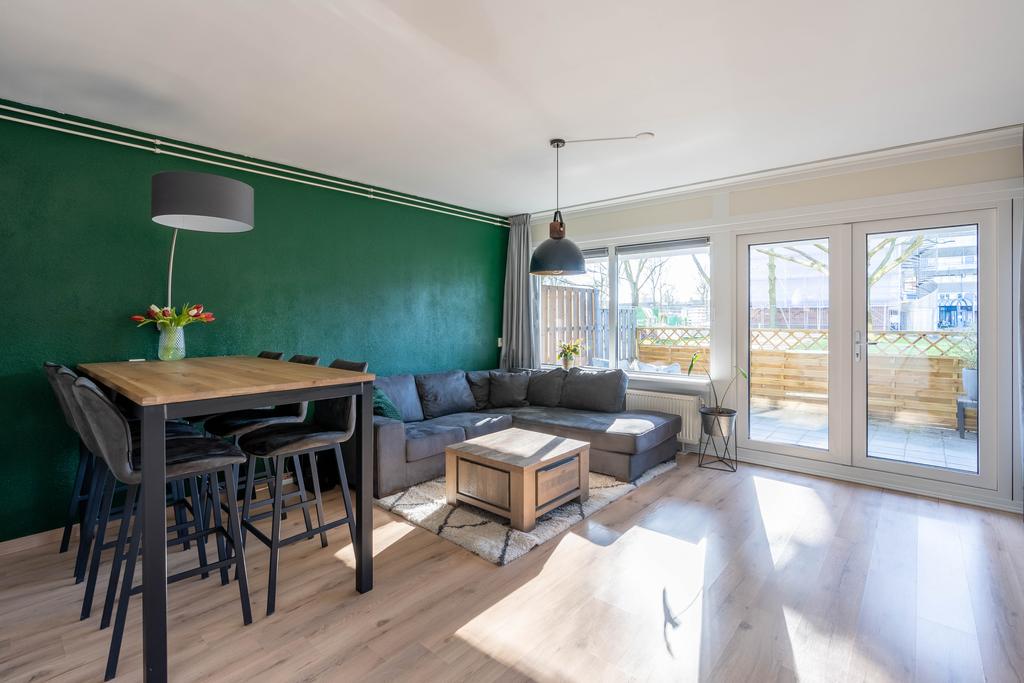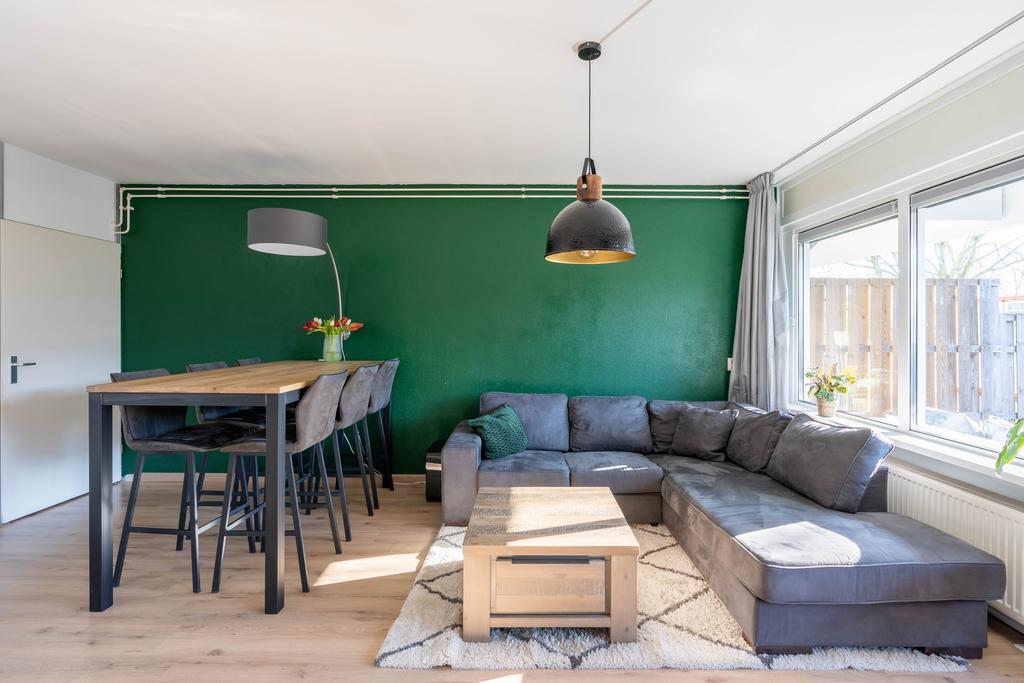 De woonkamer is ruim en tuingericht. Hier is genoeg plek om een gezellige zithoek te creëren. In de woonkamer is de eethoek geplaatst. Hier past een lekkere tafel om gezellig te dineren of eventueel een werkplek in te richten.