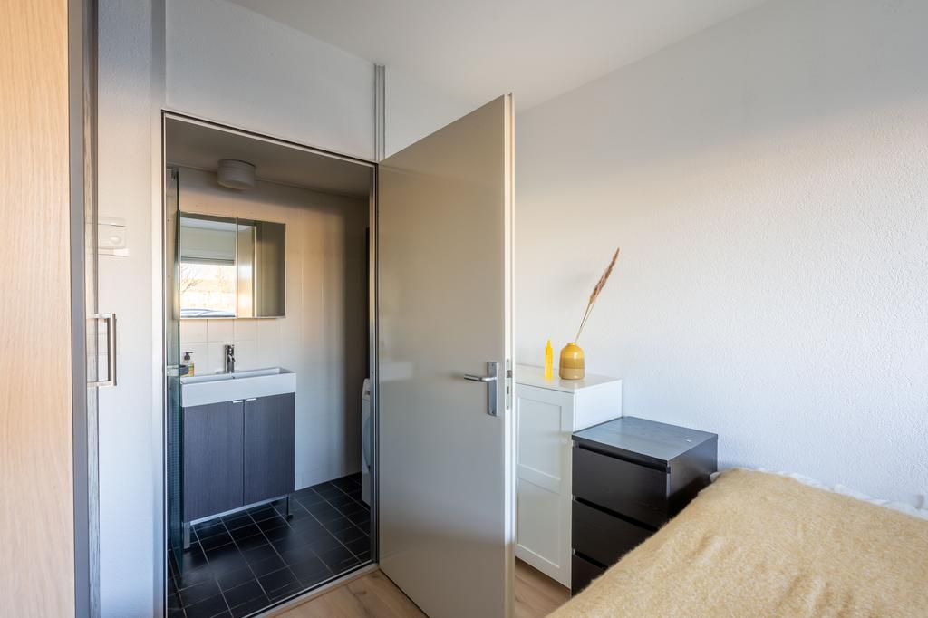 Via de slaapkamer kom je in de badkamer voorzien van inloopdouche, een wastafelmeubel en de wasmachine/droger aansluiting.
