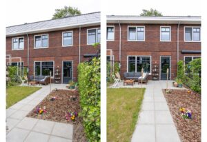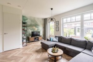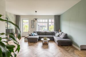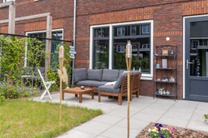Door de grote raampartij komt er veel licht naar binnen en sta je in directe verbinding met de tuin. De ligging op het zuiden zorgt voor volop licht in huis en tegelijkertijd is het door het triple-glas tijdens de hete zomerdagen binnen toch lekker koel.
