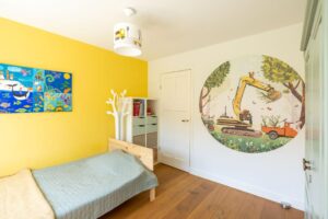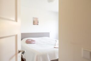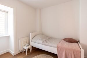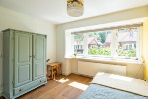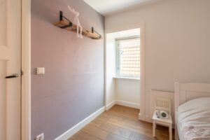 De andere twee slaapkamers liggen aan de voorzijde van het huis en meten ca. 11 en 8 m2. Ook de kleinste kamer is met de afmeting goed geschikt als slaapkamer en buitengewoon charmant.