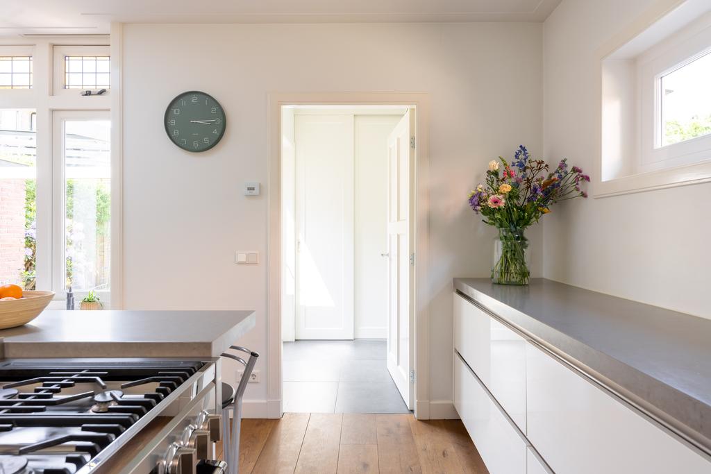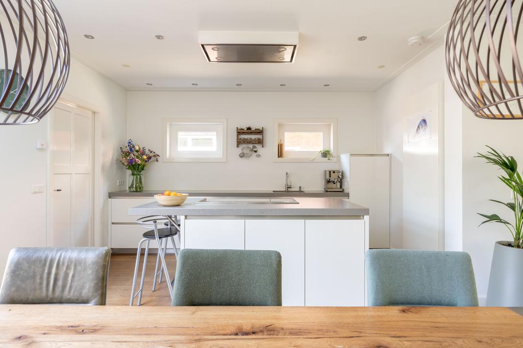 De keuken (2016) is ruim en voorzien van alle gemakken zoals een vaatwasser, koelkast, wasemkap weggewerkt tegen het plafond maar ook een fornuis met dubbele oven. Het fraaie fornuis met onder meer de stoomoven is ingebouwd in het kookeiland, waar je gezellig aanlandt na een drukke dag om gezellig bij te praten als de ander aan het koken is.