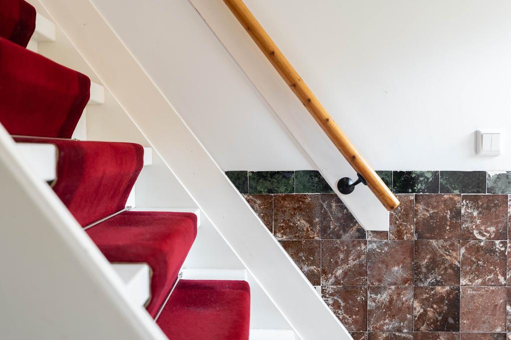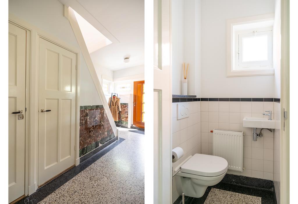 Via de prachtige entree kom in je de hal. Bij binnenkomst in de hal zie en proef je de sfeer die deze woningen zo populair maakt met de oude tegellambrisering, de granitovloer die in ere is hersteld, de hoge plafonds en de paneeldeuren.