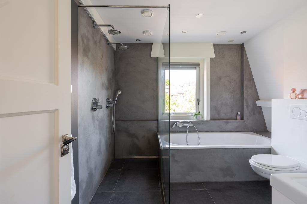 De badkamer is in 2016 volledig vernieuwd. De badkamer is afgewerkt met mooie beton ciré en de ruimte is optimaal gebruikt waardoor er zowel plek is voor een toilet, ruime dubbele inloopdouche, ligbad maar ook een wastafel met dubbele kranen. De vloerverwarming maakt de badkamer heerlijk comfortabel.