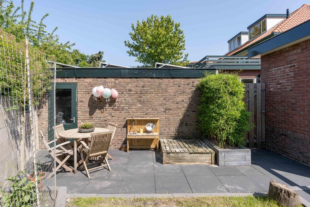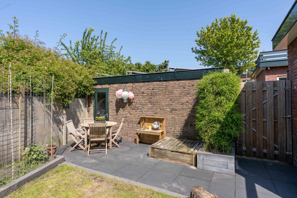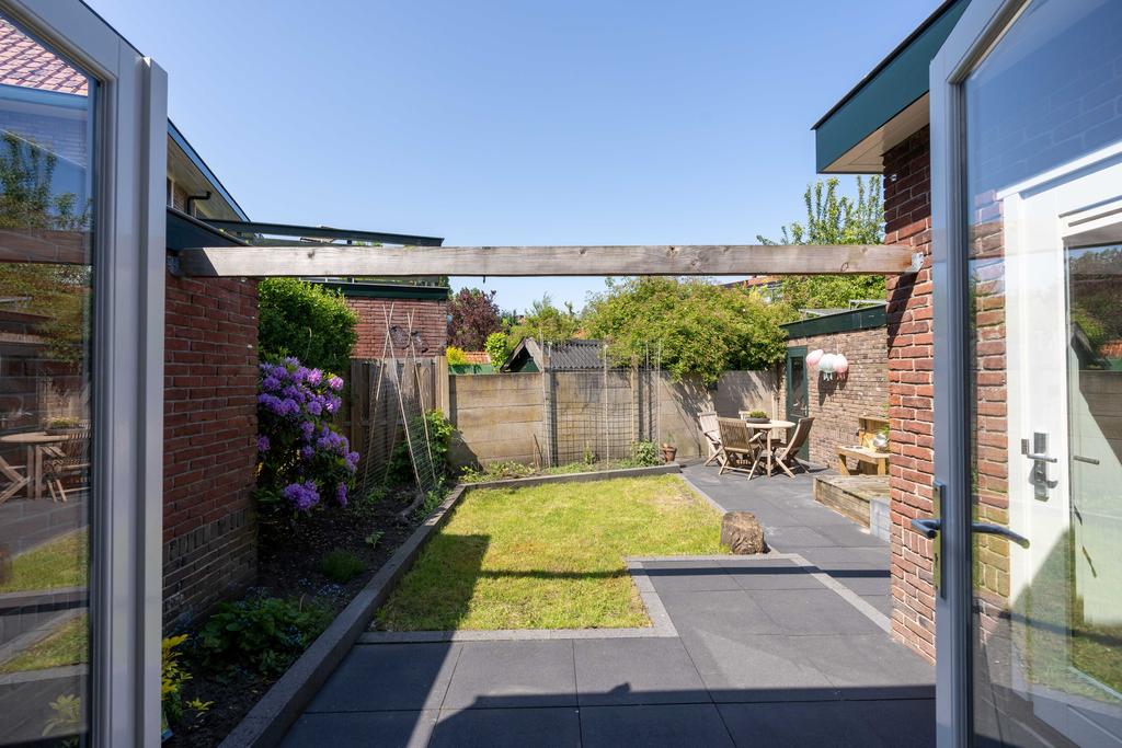 De achtertuin met achterom ligt beschut en op het noorden. Er zijn lekkere plekjes om van de zon te genieten. Een heerlijke schommel of moestuintje is hier ook mogelijk.