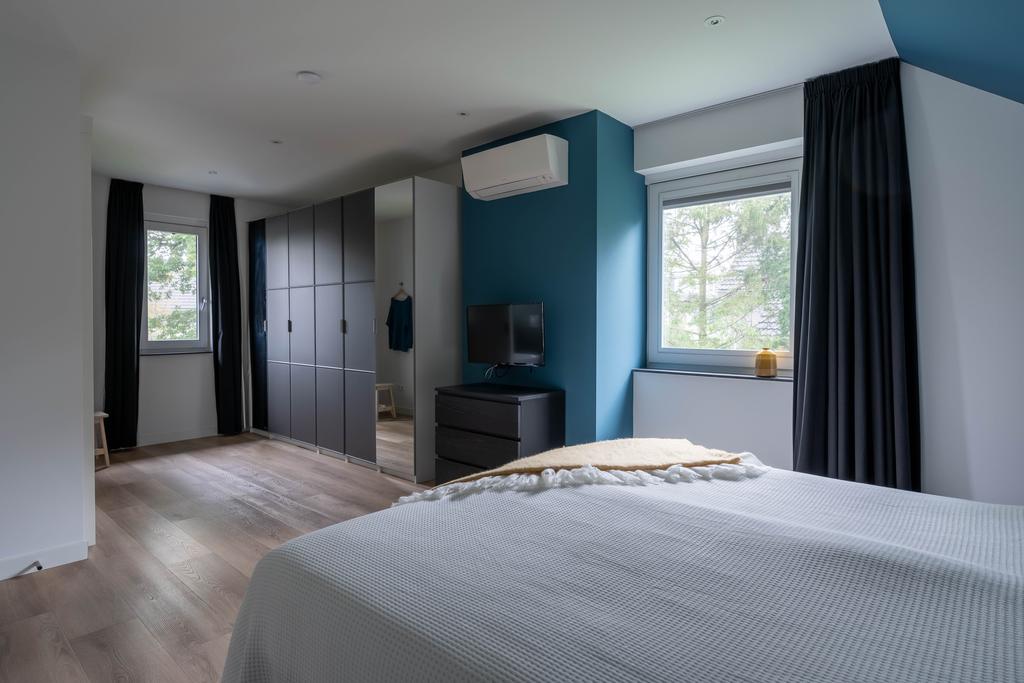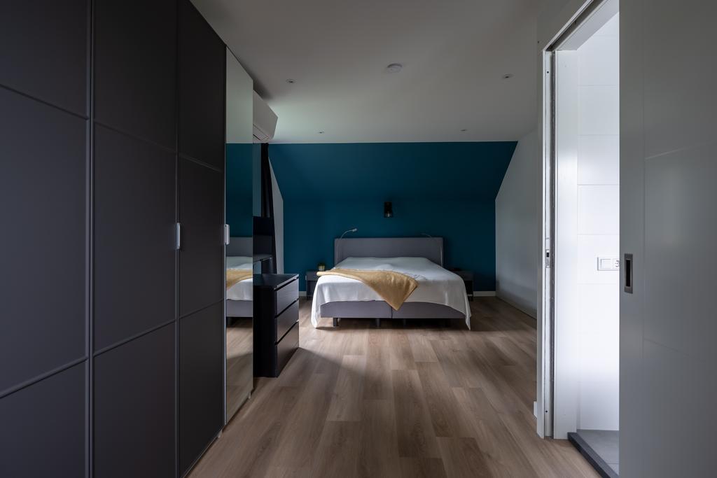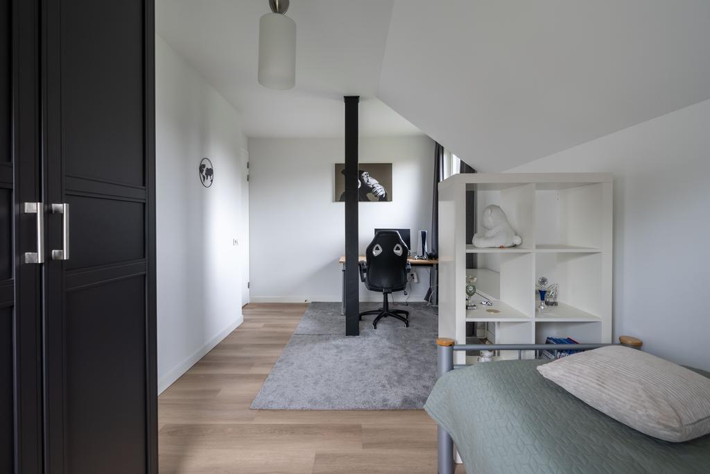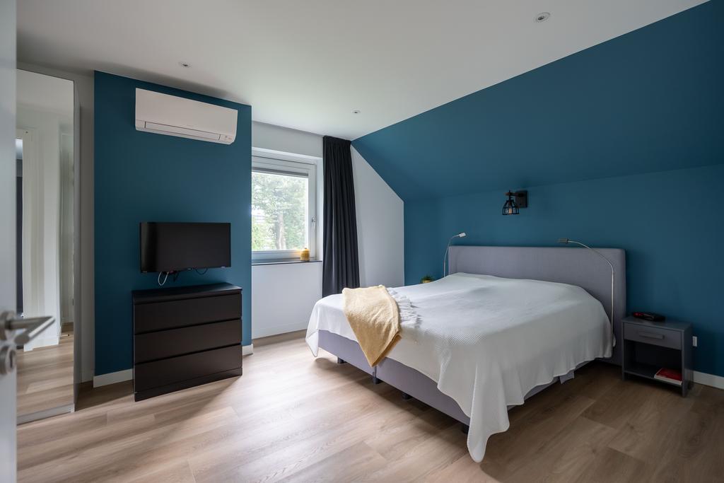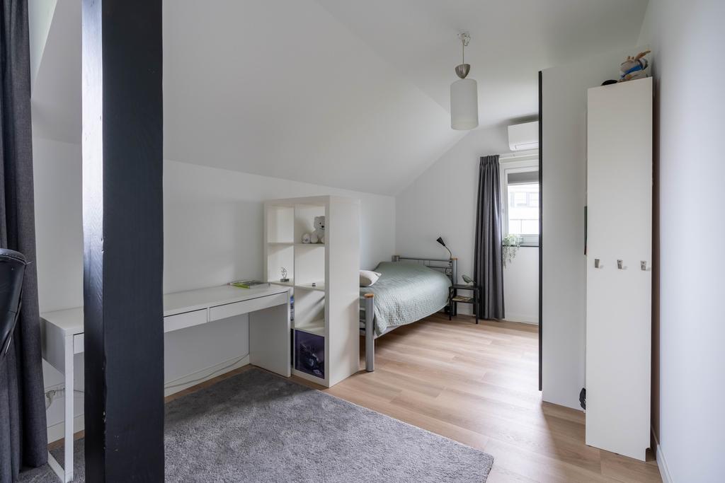 De twee slaapkamers aan de westzijde van de woning zijn respectievelijk 15 m2 en 16 m2 groot, meer dan genoeg ruimte voor een bed, studeerplek en eventueel game- of speelruimte. De kamers hebben ieder een eigen airco-unit voor koelen of verwarmen. In beide kamers volop licht door de mooie raampartijen.