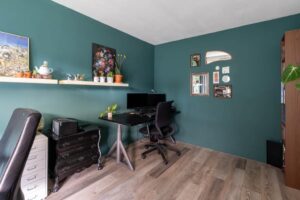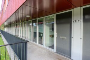 De iets verhoogde galerij brengt je naar de overdekte entree. Aan de voorzijde van het appartementencomplex is er een fijne groenstrook wat zorgt voor een plezierige afstand tot de overburen. De entree brengt je in de ruime hal met meterkast, garderoberuimte en toilet met fonteintje. Het toilet is in 2023 gerenoveerd in neutrale kleurstelling. Vanuit de hal bereik je ook de eerste ruime slaap/werkkamer. Deze kamer ligt aan de voorzijde en is ideaal om thuis te werken of bijvoorbeeld voor kantoor aan huis. Naast deze ruime kamer is op deze woonlaag een grote berging met wasmachine/droger aansluiting en veel opbergruimte.