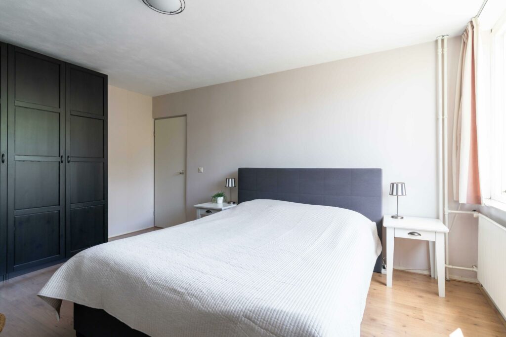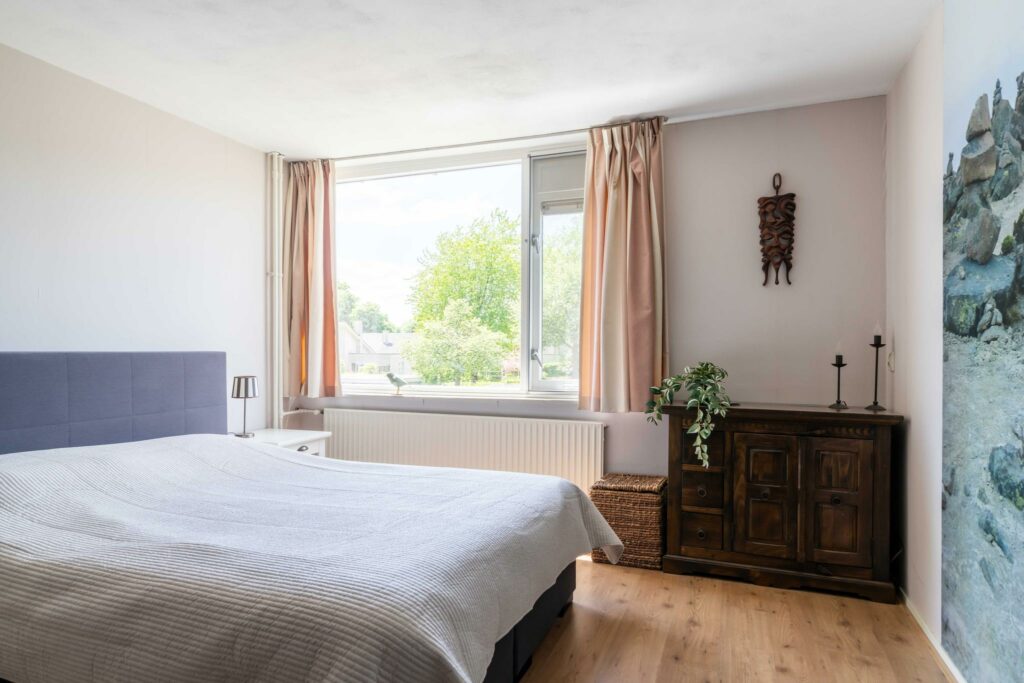 De slaapkamers zijn alle drie van mooi formaat. Twee slaapkamers bevinden zich aan de achterzijde, deze meten respectievelijk ca. 9 en 17 m2. De derde slaapkamer, wederom van goed formaat met ca. 12 m2 bevindt zich aan de voorzijde. Deze slaapkamer heeft een eigen wastafel.