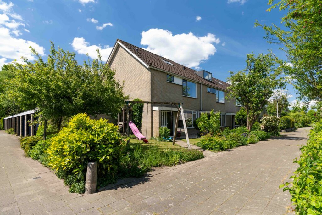 De grote voortuin loopt over in een royale zijtuin. Deze is rijkelijk begroeid met diverse planten en bloemen. Tegelijkertijd is het een ideale plek voor kinderen om te spelen met ruimte genoeg voor meerdere speeltoestellen.