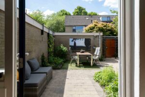 De garage is zowel vanuit de achtertuin als via het hofje bereikbaar. Met een oppervlakte van ca. 17 m² is voldoende ruimte voor het stallen van een auto. Daarnaast leent de garage zich uitstekend voor opslag, een hobbyruimte of een praktische werkplek aan huis. In de garage vind je ook de thuisbatterij, waardoor je na het afschaffen van de wettelijke salderingsregeling in 2027 niet tegen extra kosten voor je zonne-energie aan zult lopen.