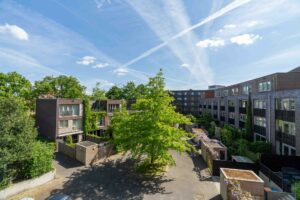 Hoewel het complex direct tegenover station Amersfoort ligt – ideaal voor forenzen – bevindt dit appartement zich aan de rustige achterzijde van het gebouw. Hierdoor woon je in alle rust met uitzicht op een groene, sfeervolle binnentuin. Met de trein ben je binnen 15 minuten in Utrecht en binnen 30 minuten in Amsterdam – perfect voor wie centraal wil wonen en snel onderweg wil kunnen zijn.